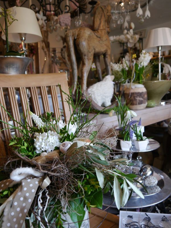 Gekonnt setzte Margot Zwack bei Ihrer Ausstellung die neuesten Frühjahrstrends im Bereich Wohnen und Garten in Szene. Gestecke und Sträuße in frischen Farben, sowie Kerzen, Vasen und Kissen bringen Ihnen mit wie von Zauberhand den Frühling ins Haus.