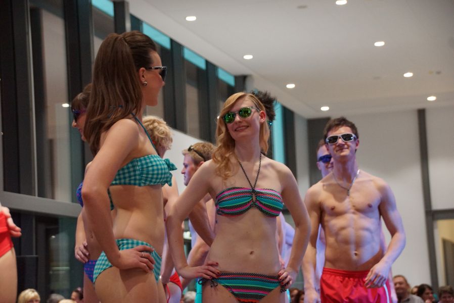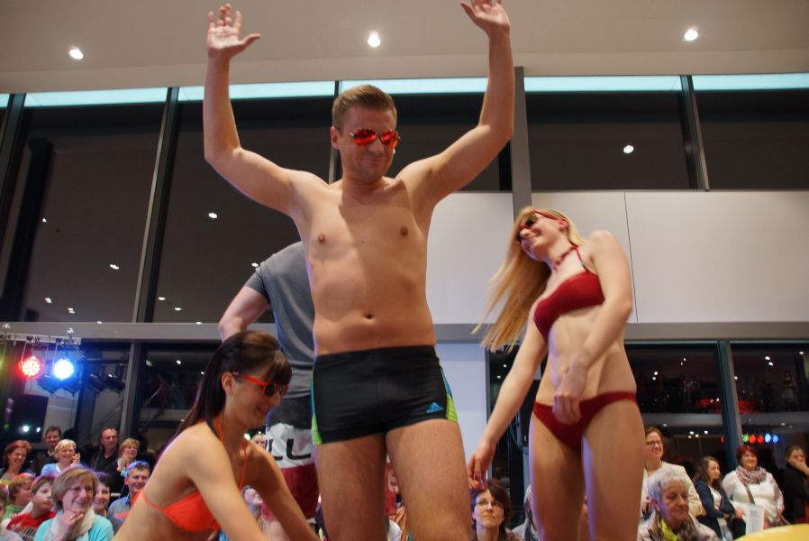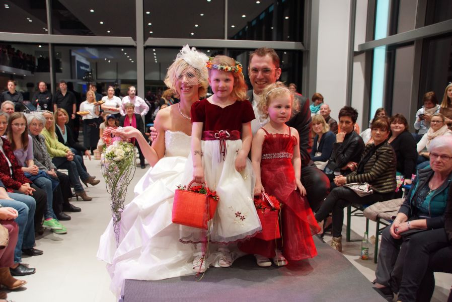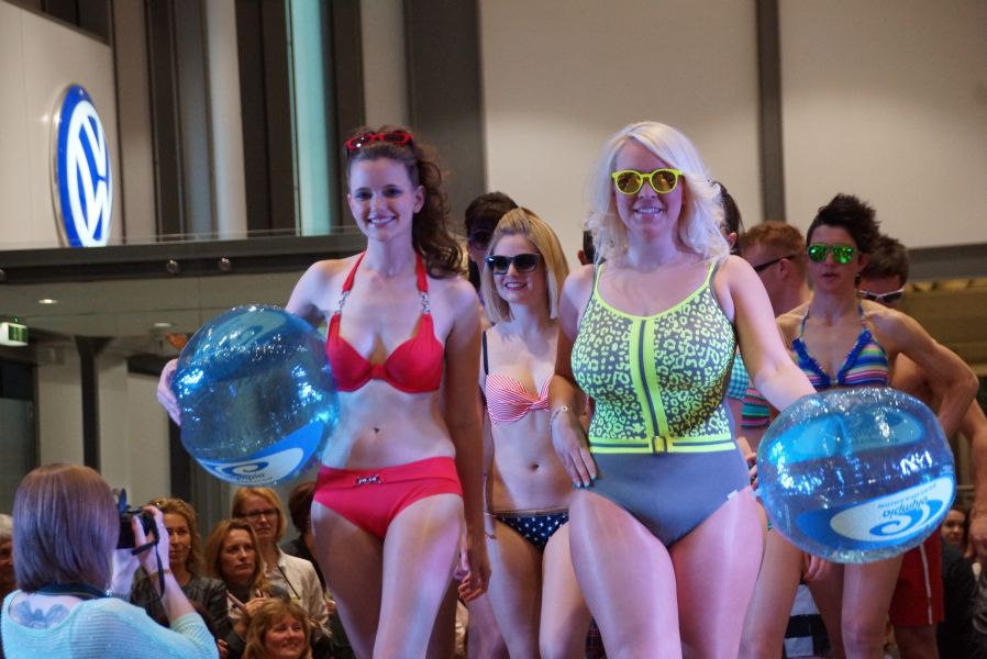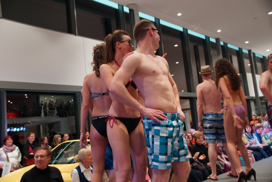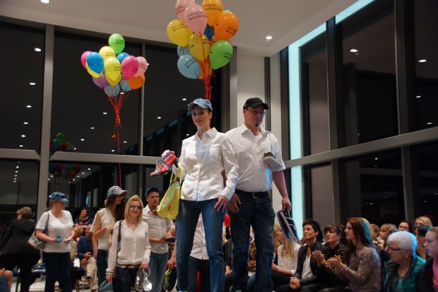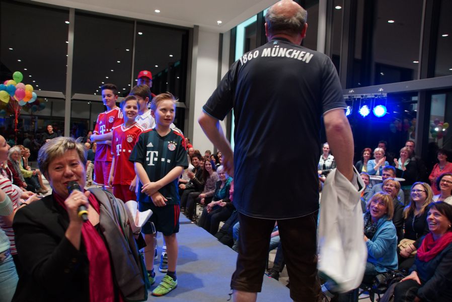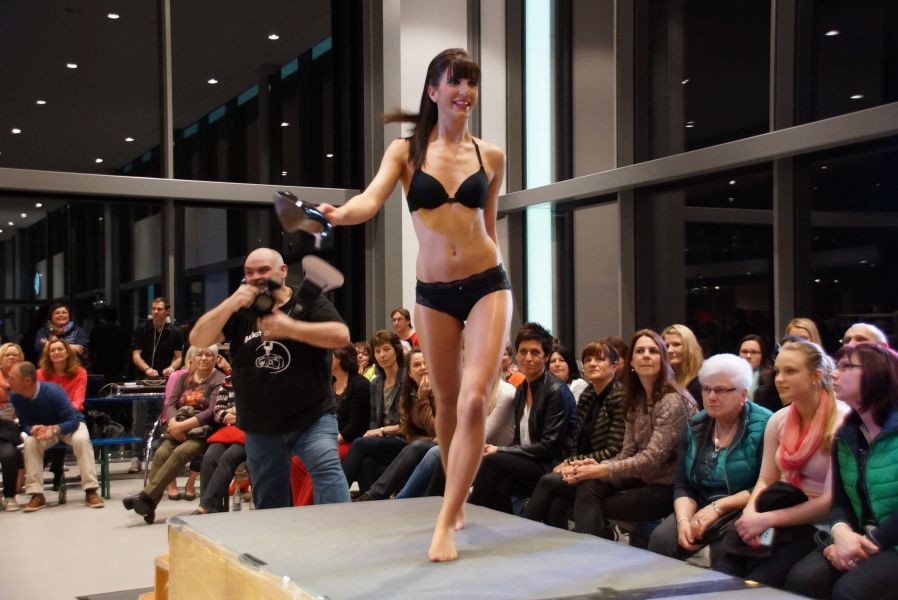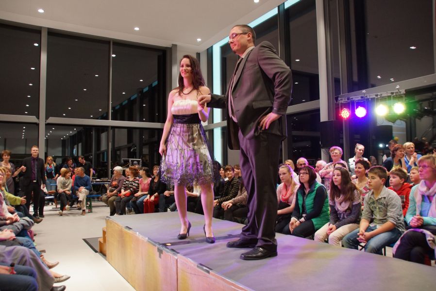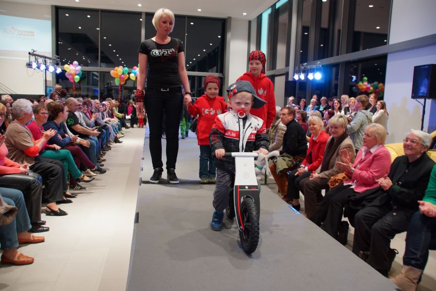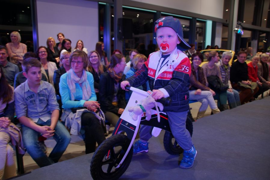 Der ganze Abend war gespickt von Highlights wie dem Auftritt von Köhler jun., der mit einem Laufrad von VW und passendem Diddi im Mund über den Laufsteg „preschte“, der sagenhaften Vorführung von Wäsche- und Bademode, die vor allem die Herzen der Männer höher schlagen ließ oder den bezaubernden Brautkleidern, bei denen die Damen glasige Augen bekamen.