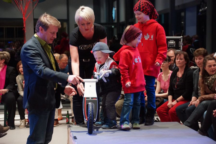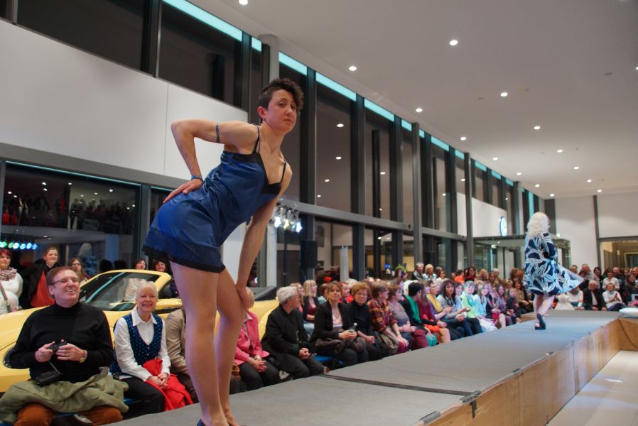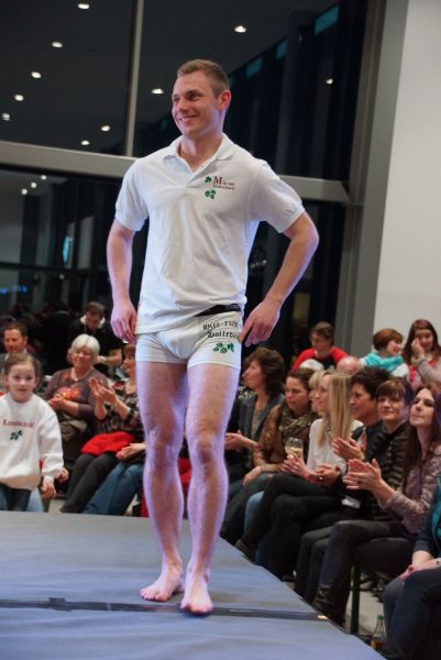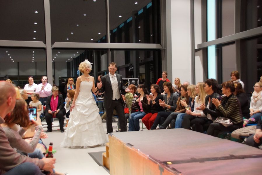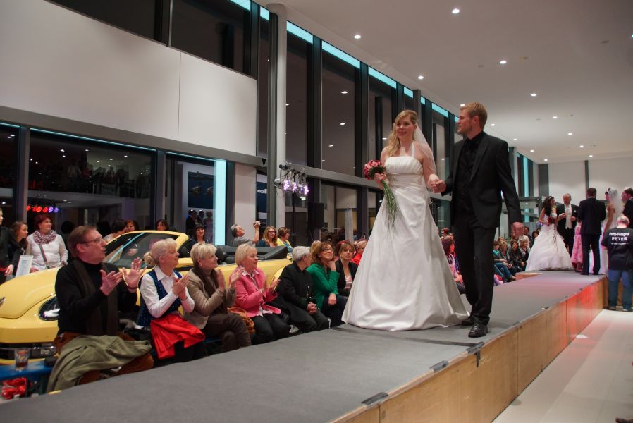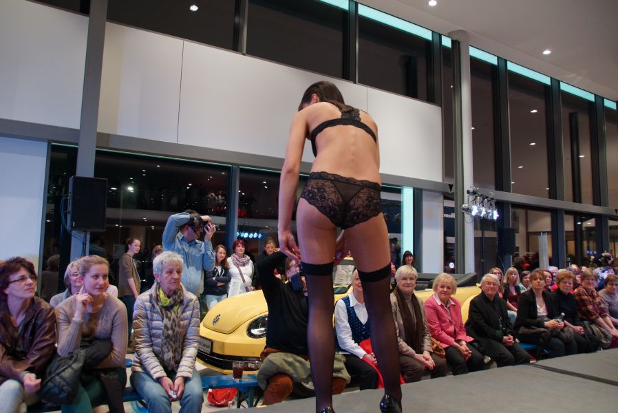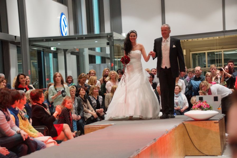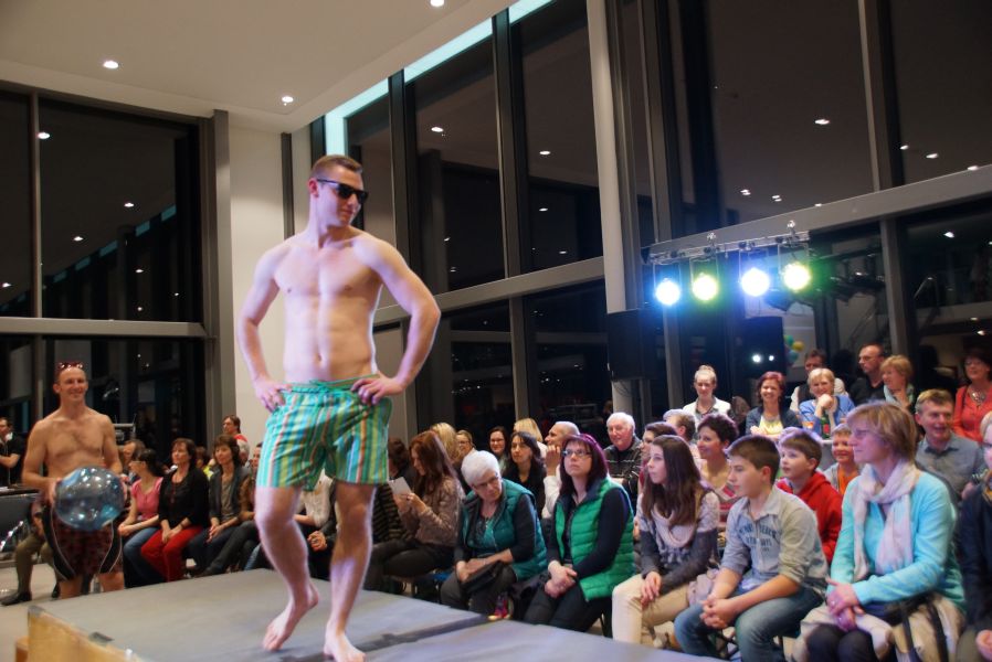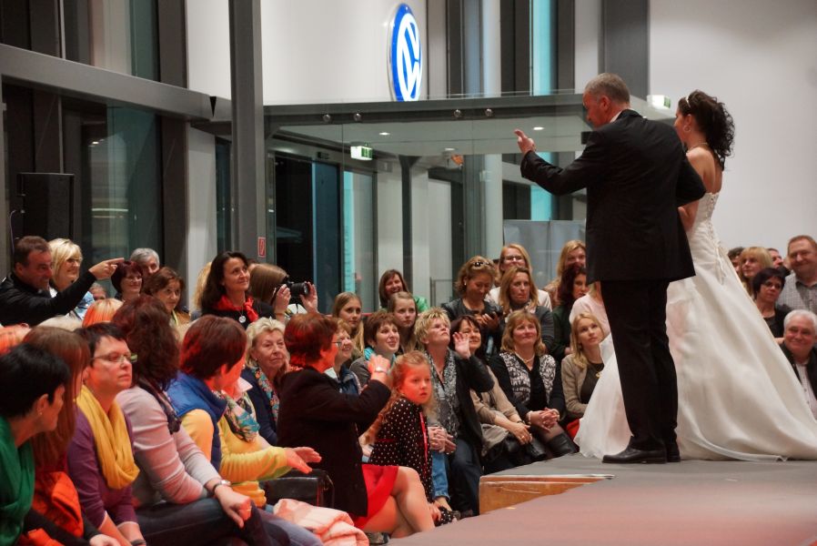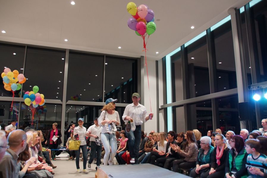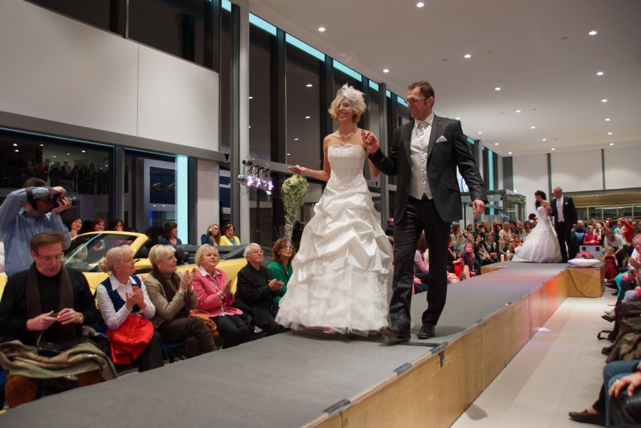 Der ganze Abend war gespickt von Highlights wie dem Auftritt von Köhler jun., der mit einem Laufrad von VW und passendem Diddi im Mund über den Laufsteg „preschte“, der sagenhaften Vorführung von Wäsche- und Bademode, die vor allem die Herzen der Männer höher schlagen ließ oder den bezaubernden Brautkleidern, bei denen die Damen glasige Augen bekamen.