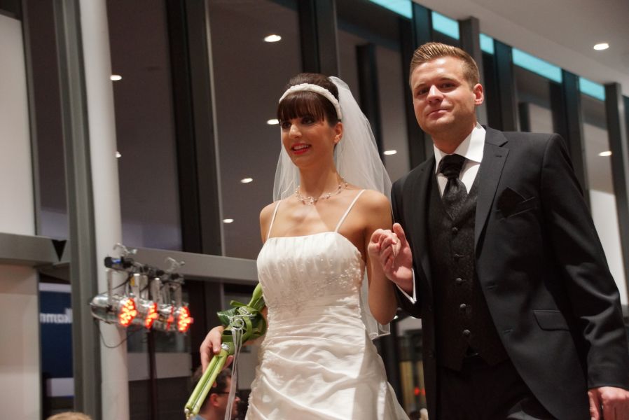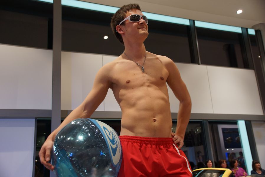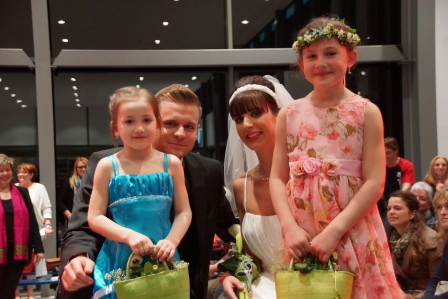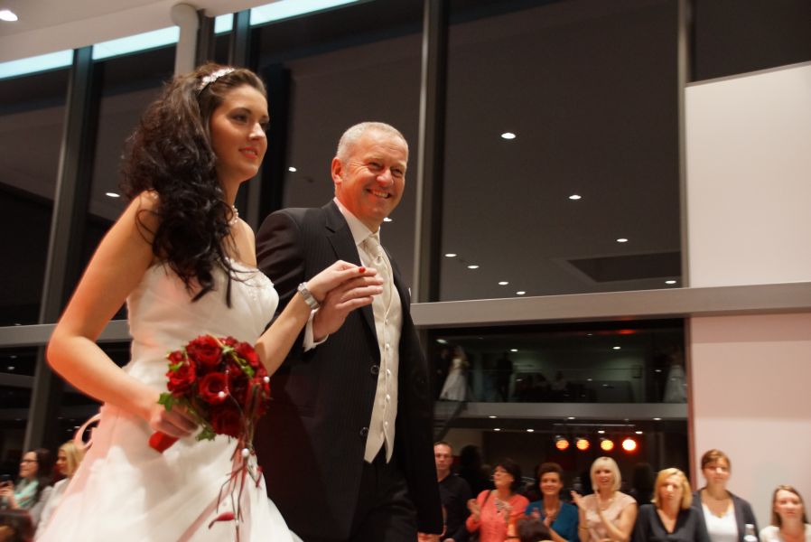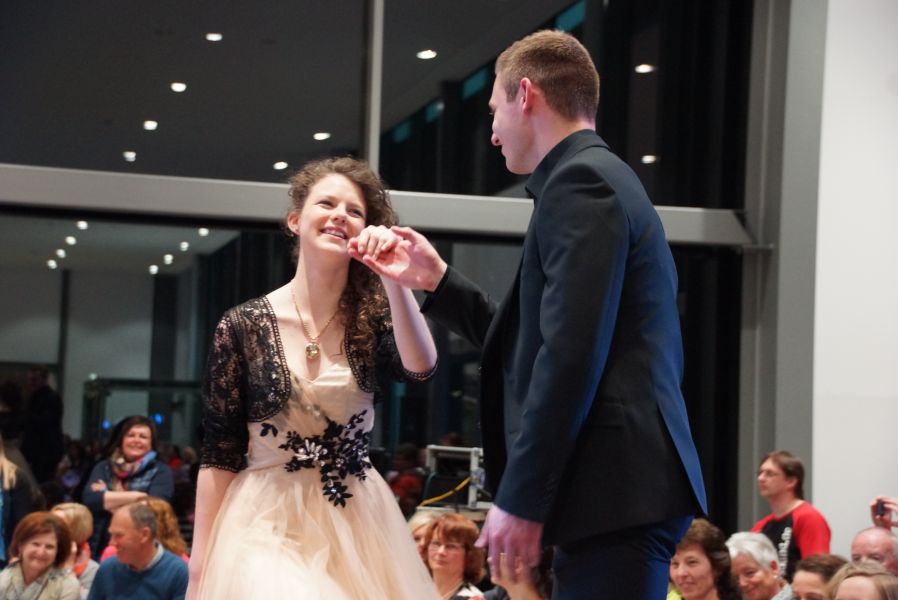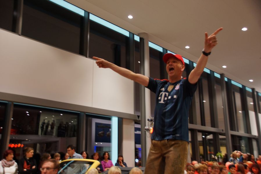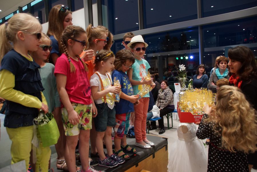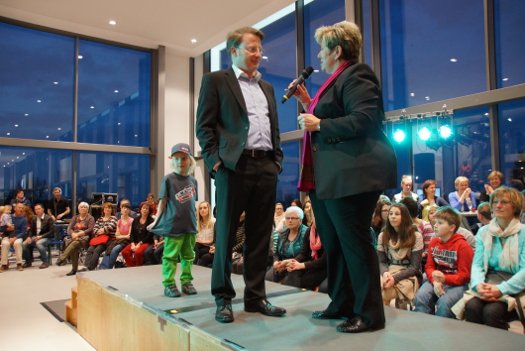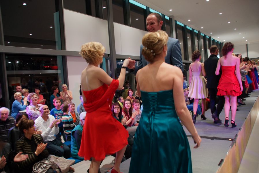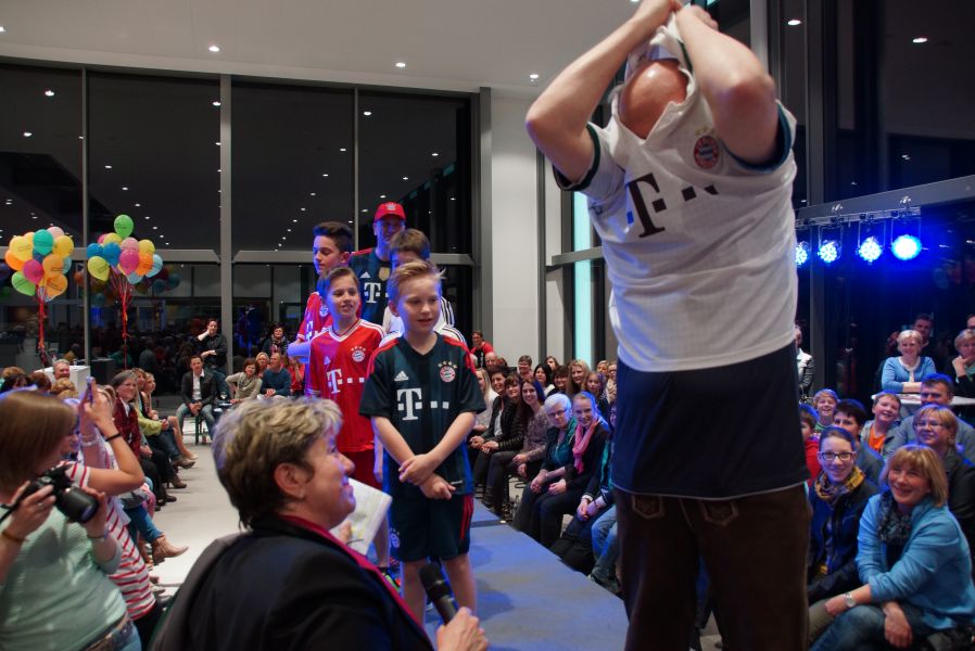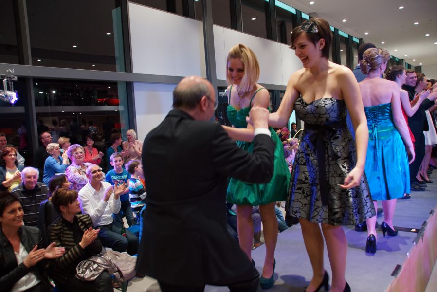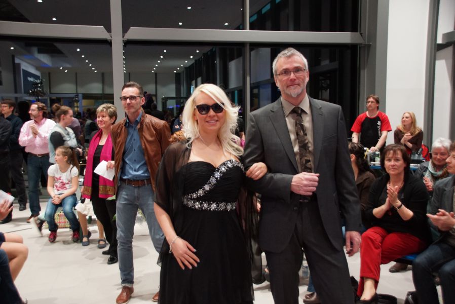 Der ganze Abend war gespickt von Highlights wie dem Auftritt von Köhler jun., der mit einem Laufrad von VW und passendem Diddi im Mund über den Laufsteg „preschte“, der sagenhaften Vorführung von Wäsche- und Bademode, die vor allem die Herzen der Männer höher schlagen ließ oder den bezaubernden Brautkleidern, bei denen die Damen glasige Augen bekamen.