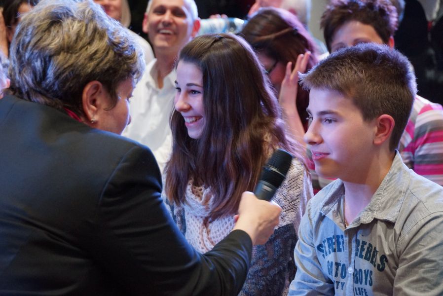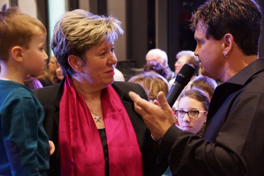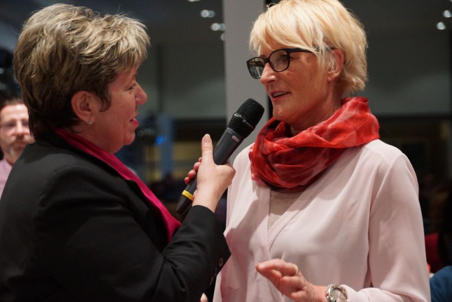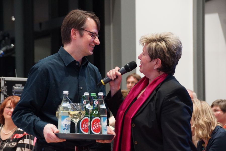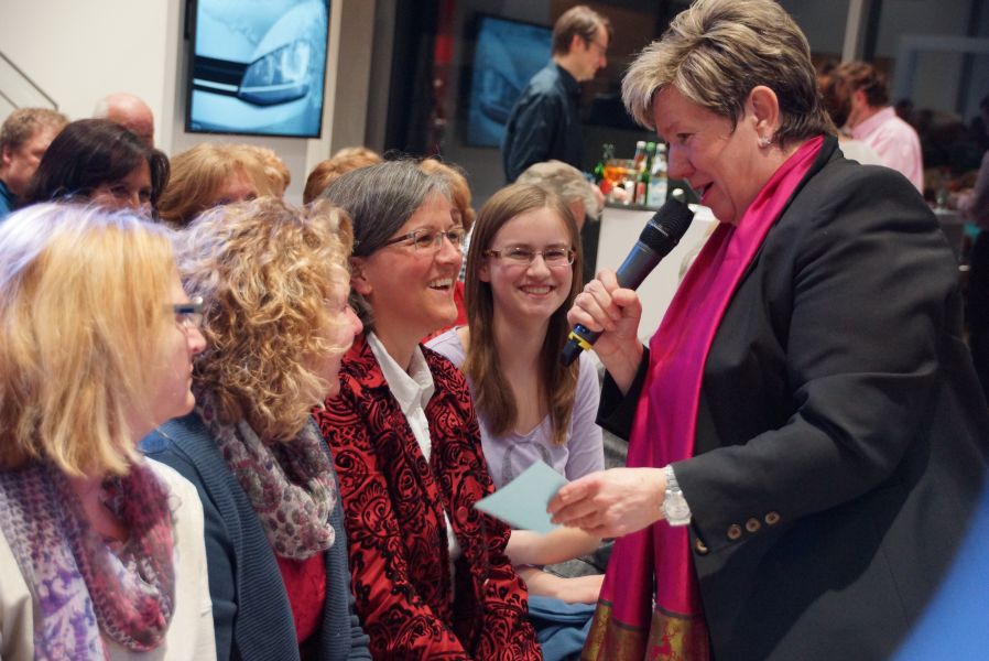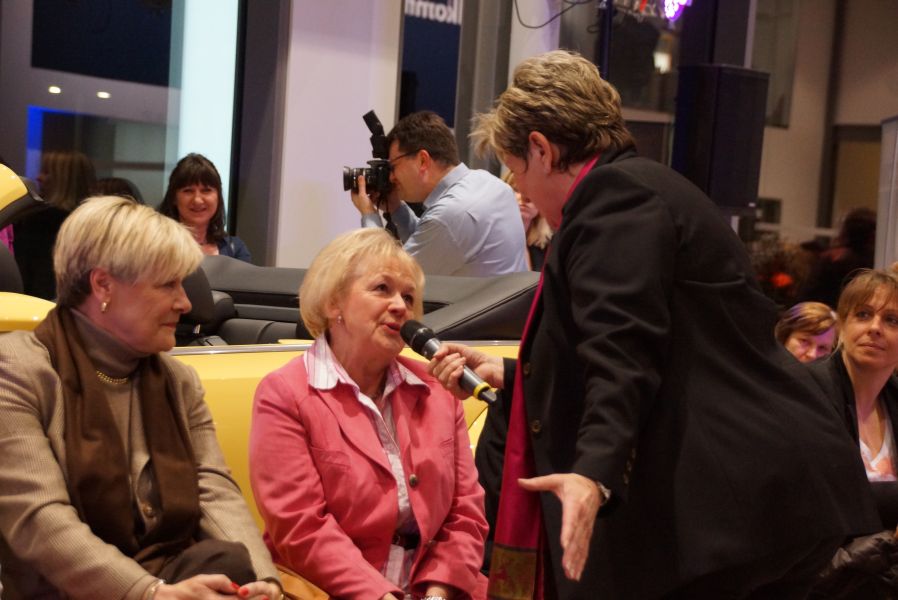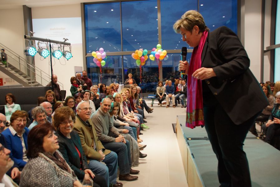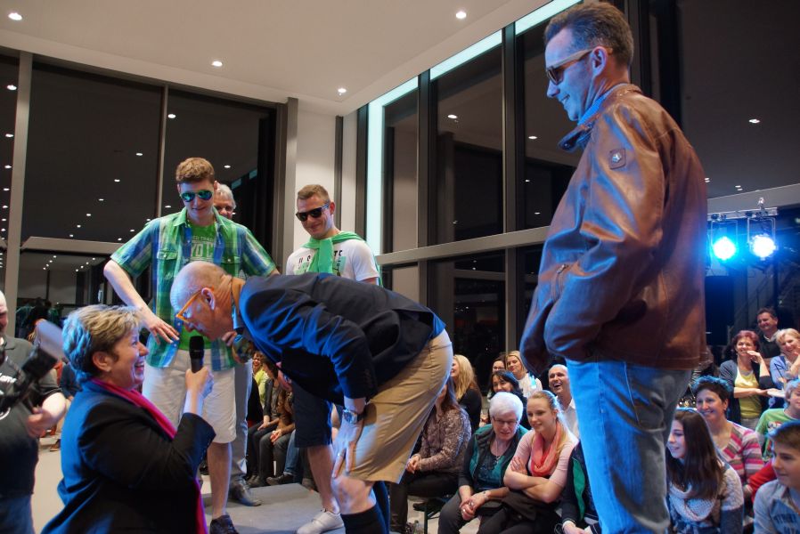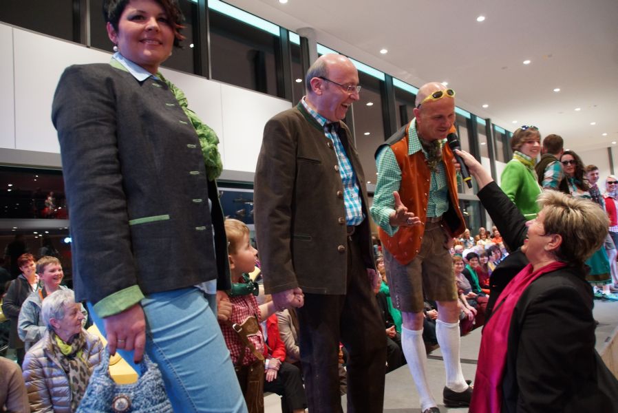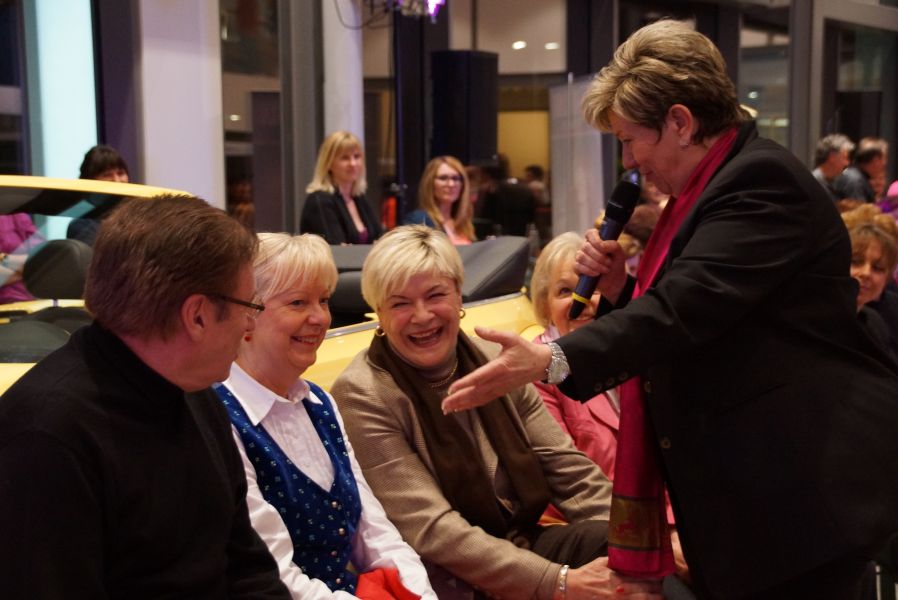 Frau Langwieser war bei der Präsentation, wie nicht anders zu erwarten, in Hochform. Wartezeiten wurden von ihr mühelos für zahlreiche Interviews von Zuschauern und teilnehmenden Geschäftsinhabern genutzt.
