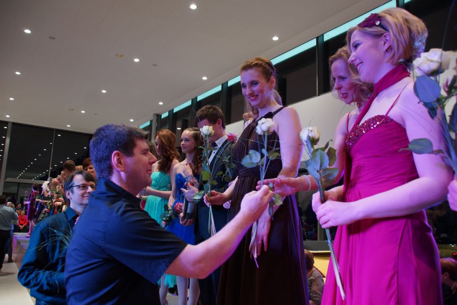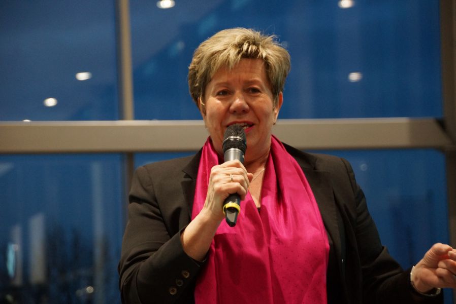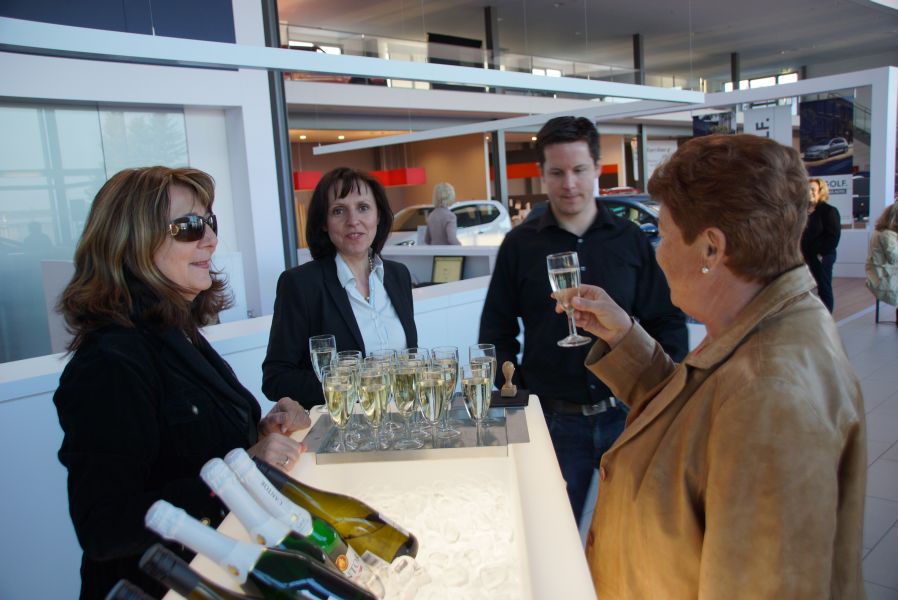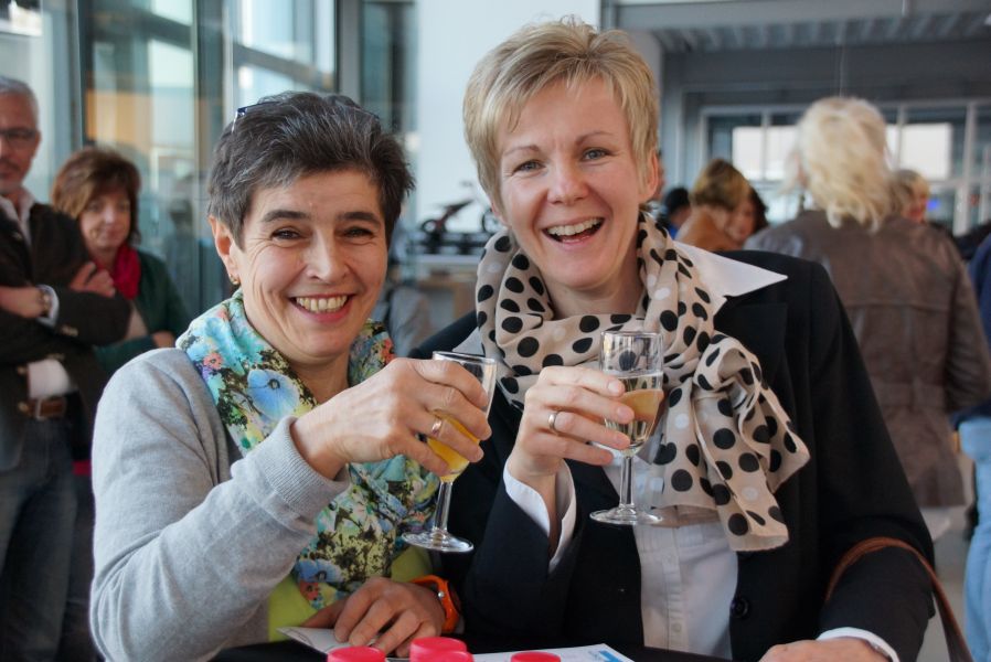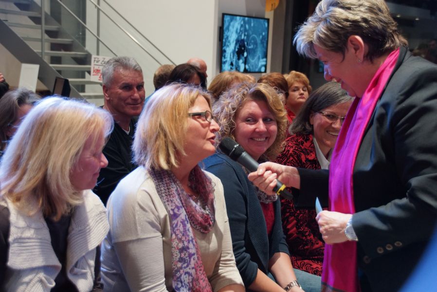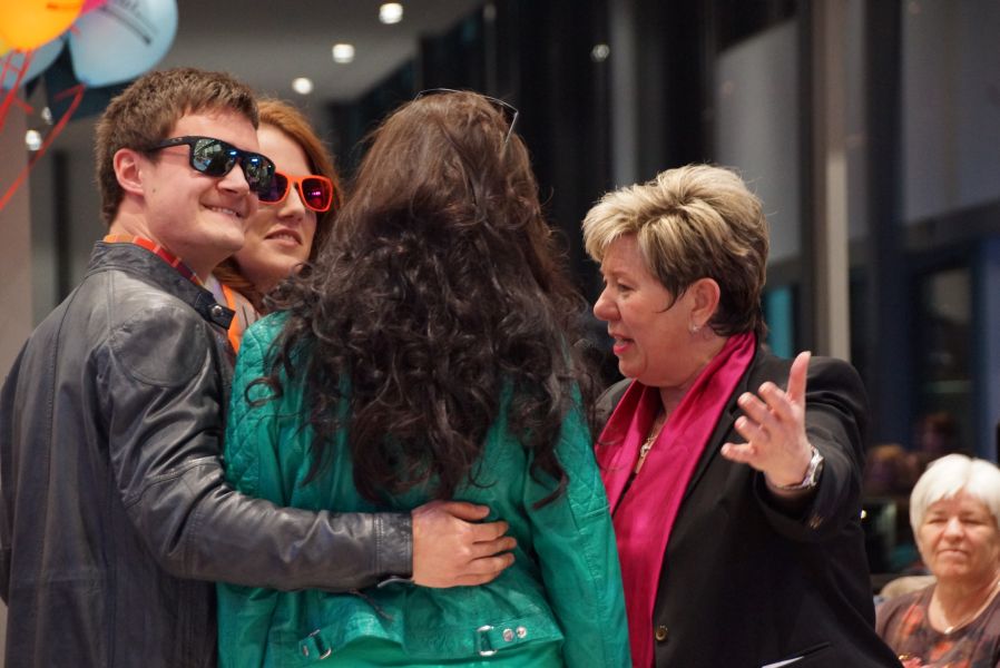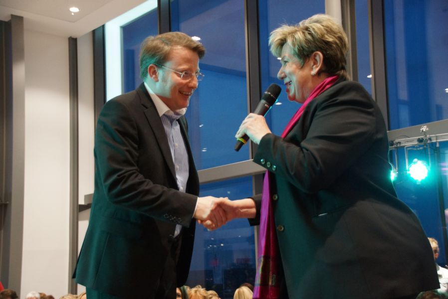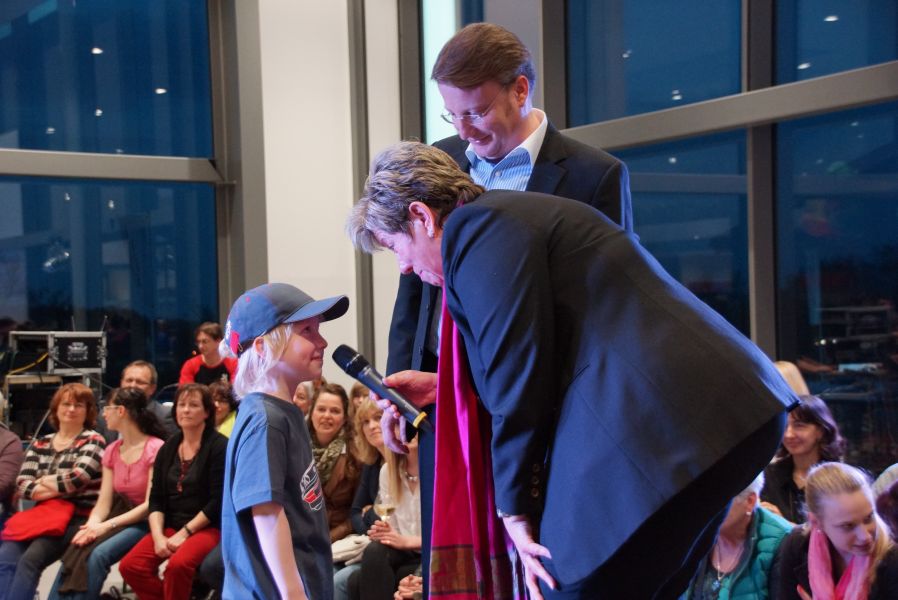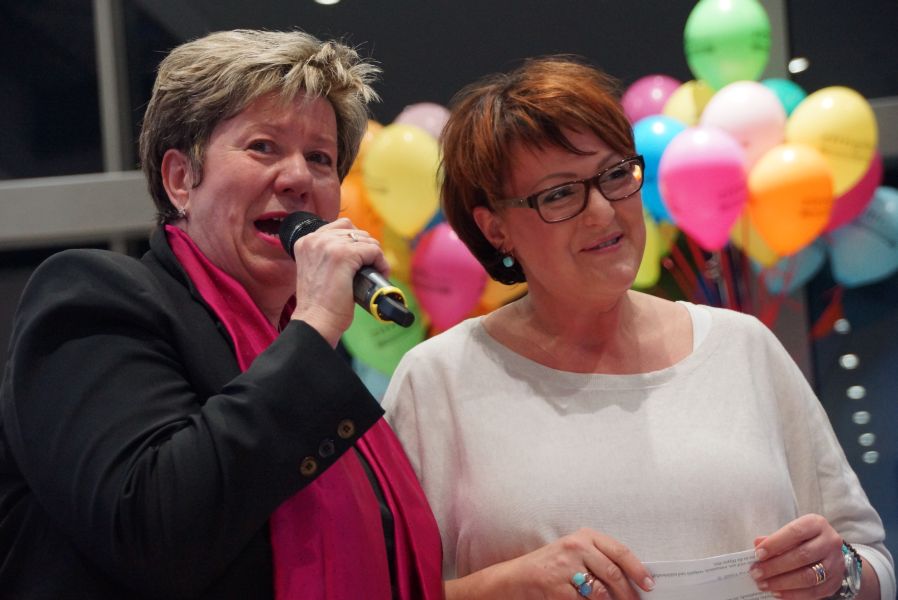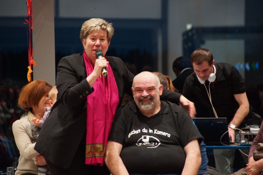 Frau Langwieser war bei der Präsentation, wie nicht anders zu erwarten, in Hochform. Wartezeiten wurden von ihr mühelos für zahlreiche Interviews von Zuschauern und teilnehmenden Geschäftsinhabern genutzt.