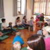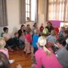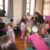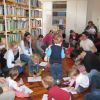 Renate Fuchs erzählte für die vielen kleinen und großen Zuhörer die turbulente Geschichte vom größten Ei der Welt: Puh, so ein riesiges Ei! Und so ein weiter Weg bis zur Hasenwerkstatt!