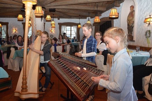 So einiges an Instrumenten, von der Ziach über das Hackbrett bis hin zur Harfe, fuhren die gut 40 Interpreten auf, die teilweise bis aus dem Landkreis Freising angereist waren. Hinzu kam der Dürnzhausener Kinderchor, der sich mit wunderschönen Liedern in die Herzen der Zuschauer sang. Moderiert wurde der Nachmittag von den beiden "Holledauer Tanzbodenfegern", Rosa Karger und Irmi Grünwald.