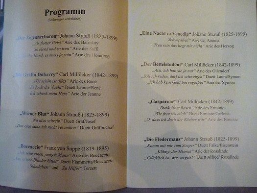 Dem Publikum schien es gefallen zu haben, die einzelnen Passagen wurden mit lang anhaltendem Applaus bedacht und in der klassischen Sektpause auch nicht mit Lob gespart. Liebhaber dieser Melodien waren in der Überzahl und genossen dankbar die hervorragenden Stimmen der SängerInn.