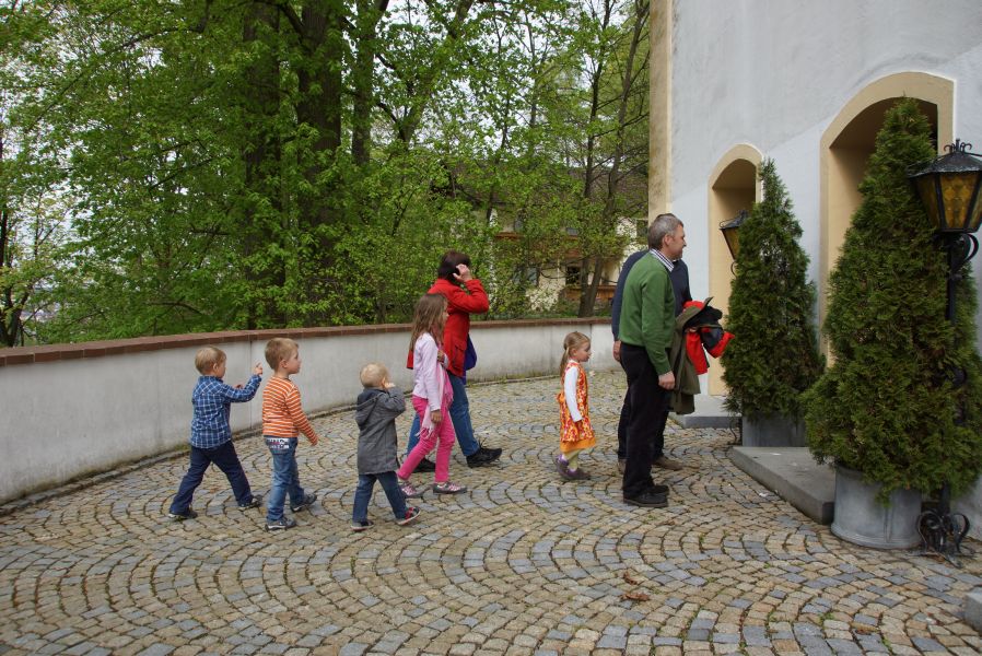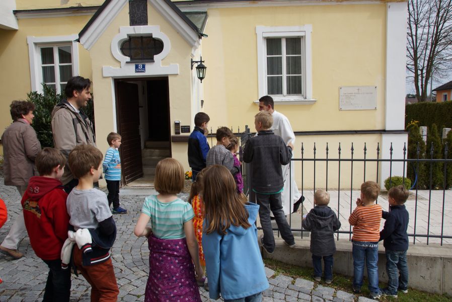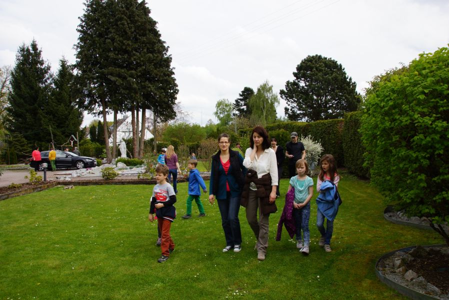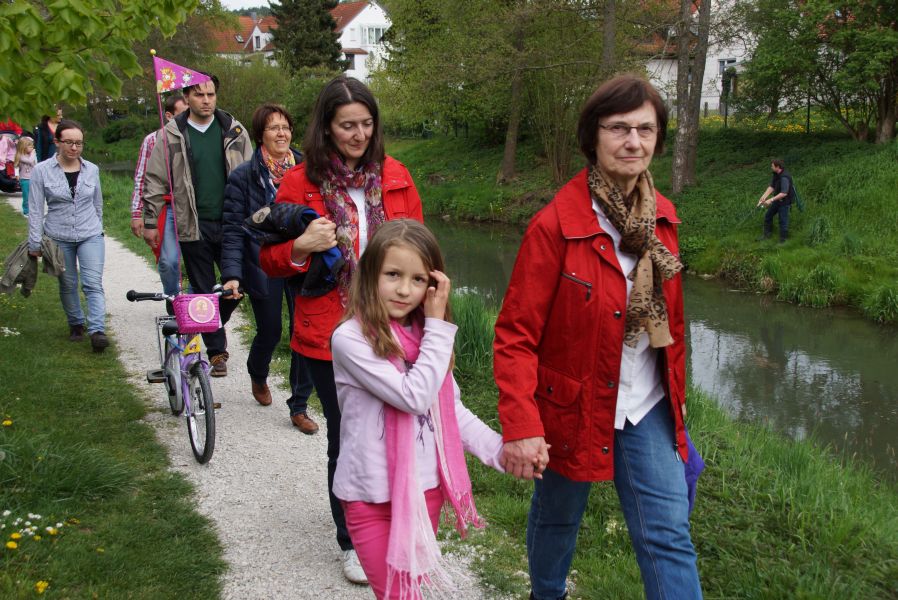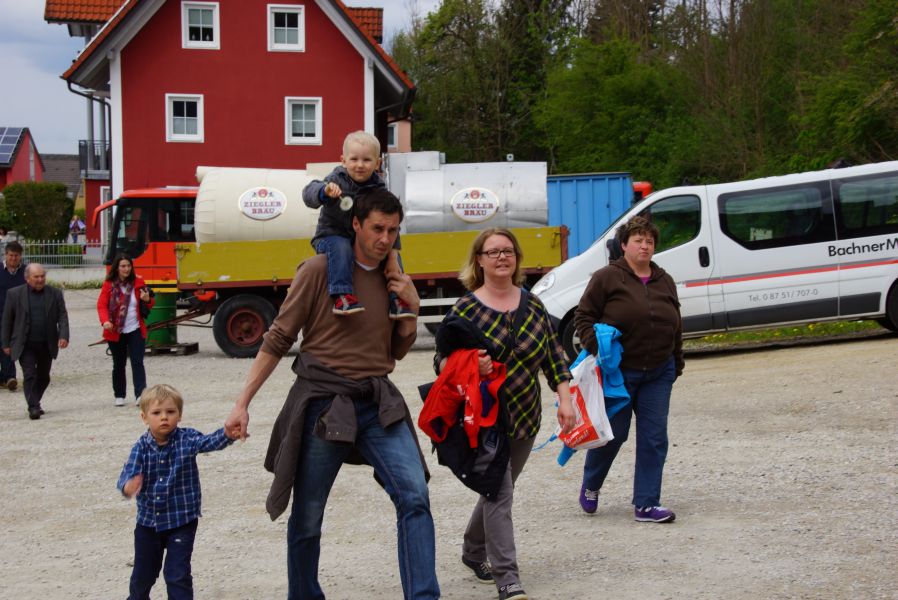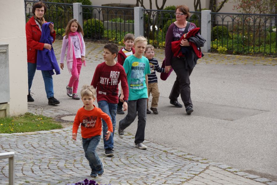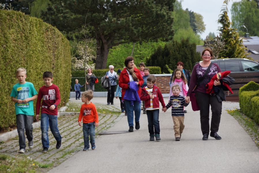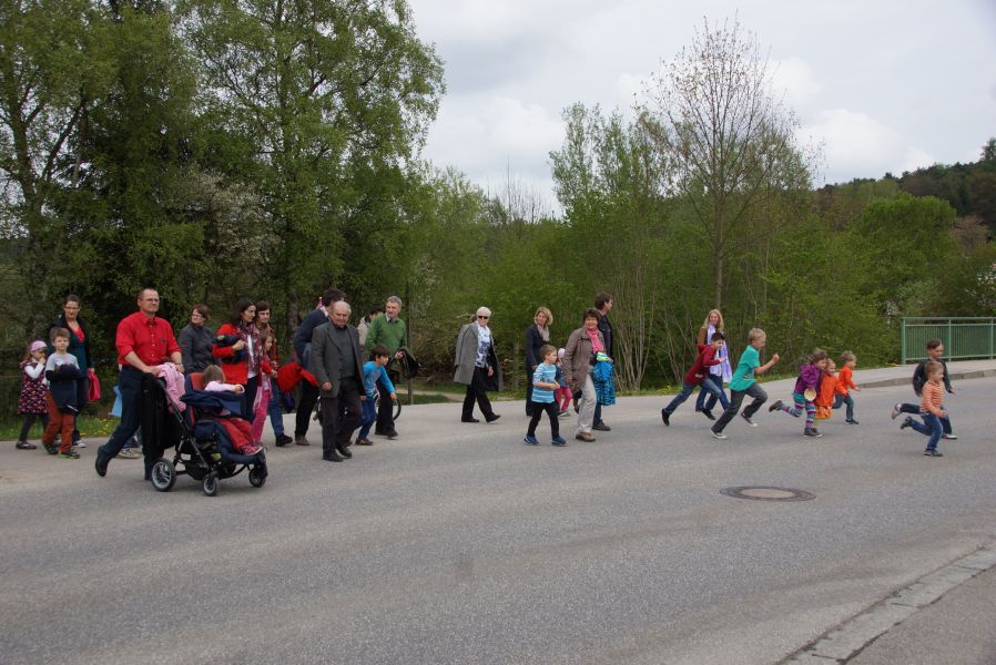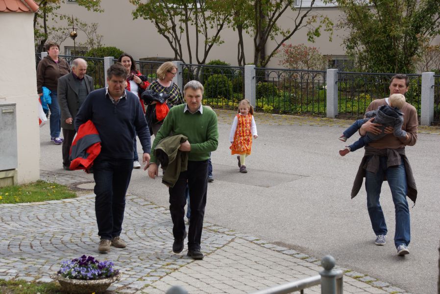 Die größeren Mädchen und Buben liefen voller Vorfreude schon immer weit voraus, da sie bereits wussten, was sie erwartete. Die Jüngeren, die zum ersten Mal mit dabei waren, genossen den Spaziergang auf den Schultern von Papa oder gemütlich im Kinderwagen.