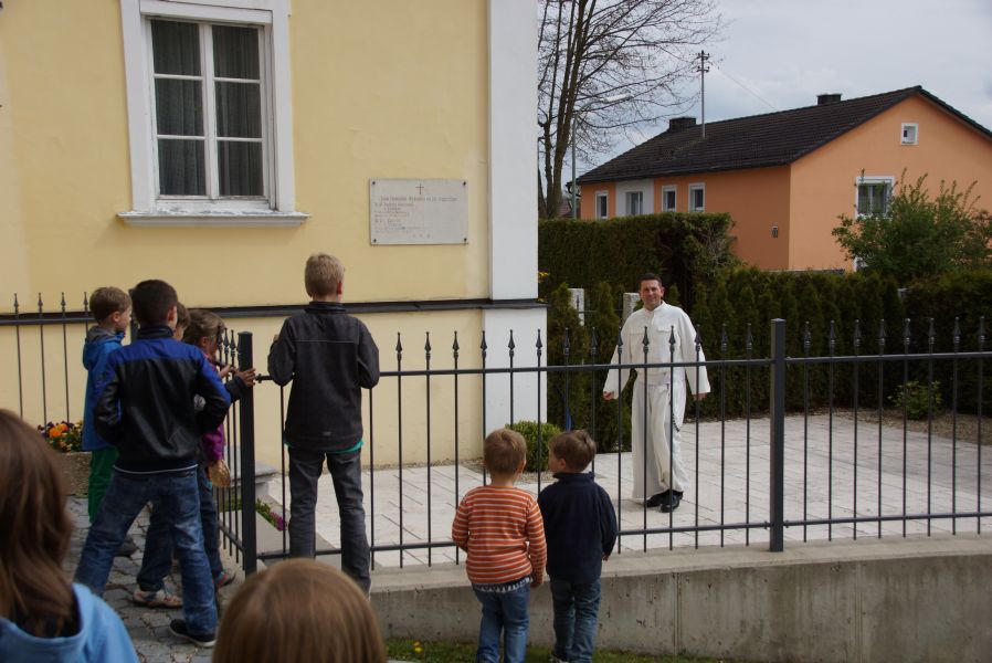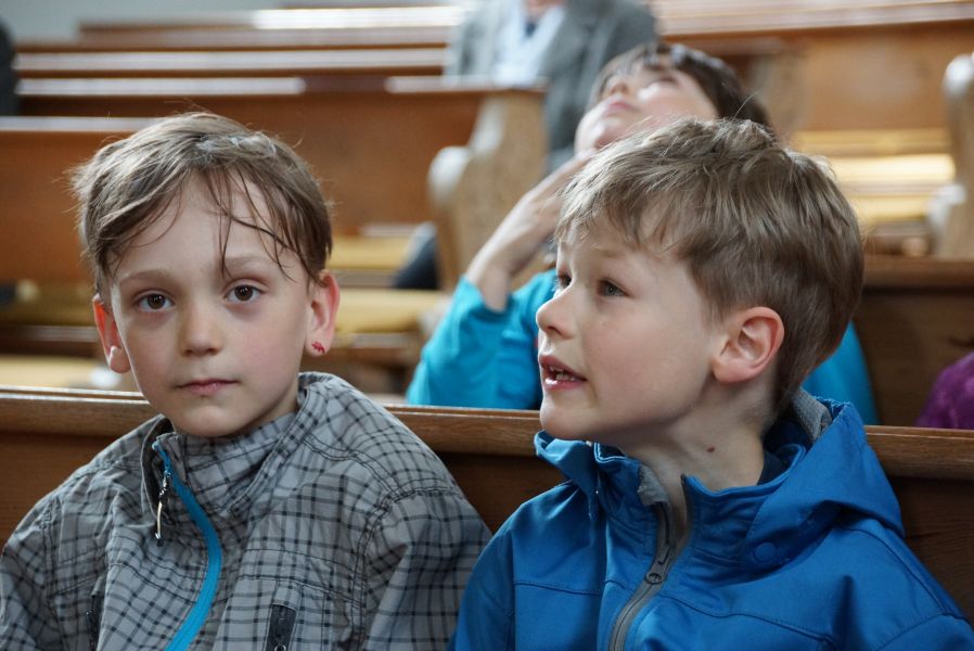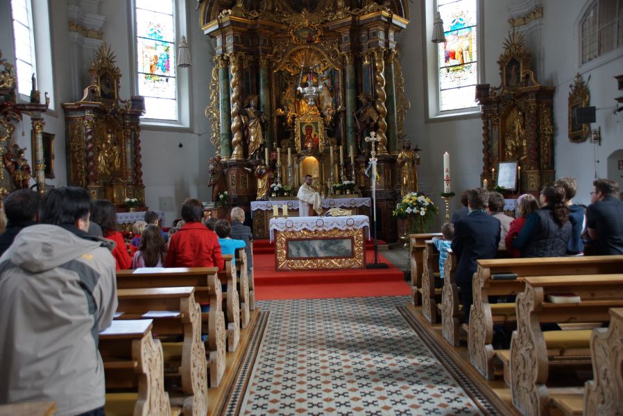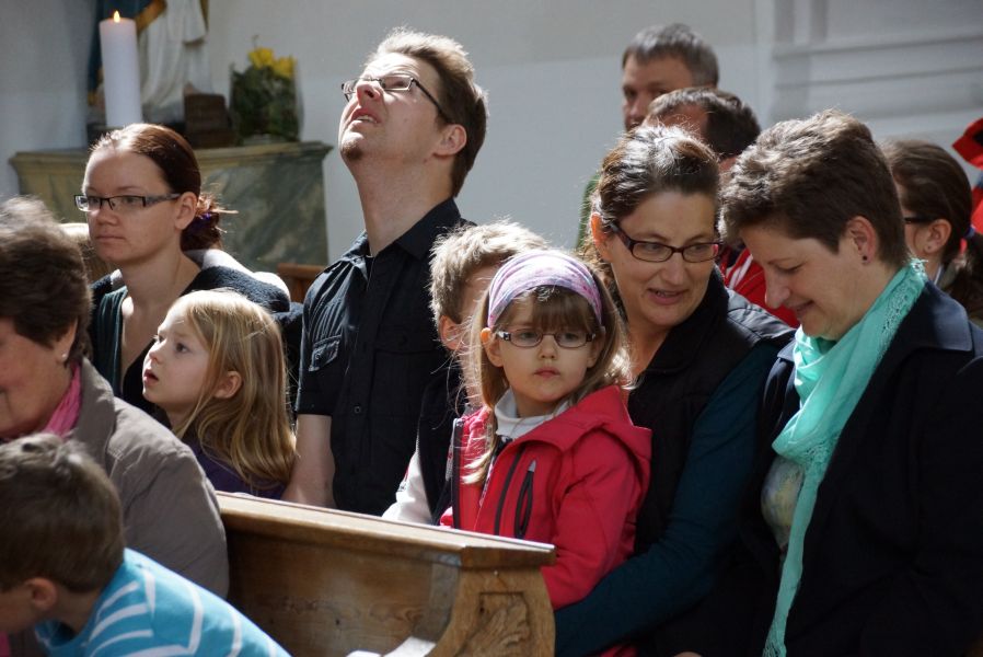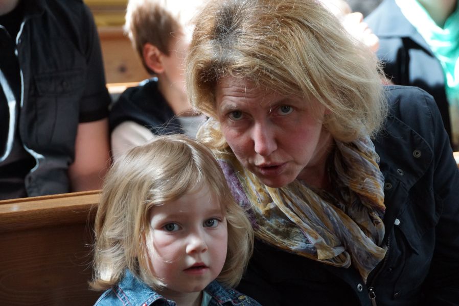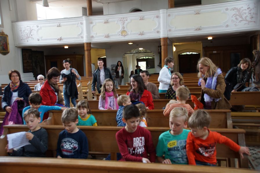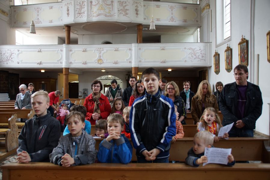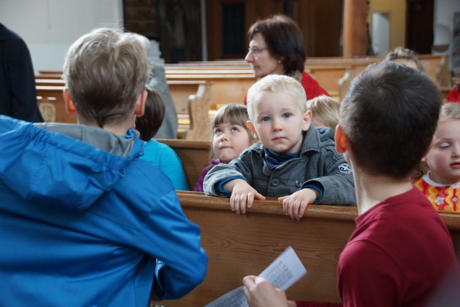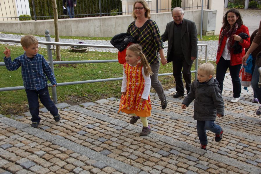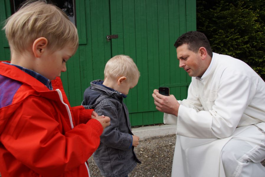 Geplant war eine kurze Andacht mit einigen gemeinsam gesungenen Liedern und einer Kindersegnung, was dann aber kürzer als gedacht ausfiel. Der Ablauf war wohl nicht so ganz mit den Patern abgesprochen, was sehr zur Belustigung der Erwachsenen beitrug.
