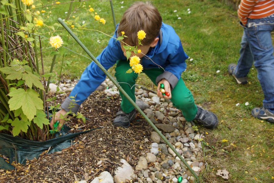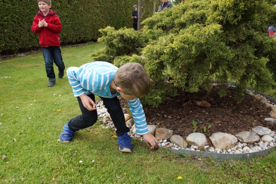 Die Kinder hatten natürlich sowieso nichts dagegen, so schnell als irgend möglich auf Ostereiersuche zu gehen. Denn wie jedes Jahr hatte der Osterhase eine Sonderschicht eingelegt.