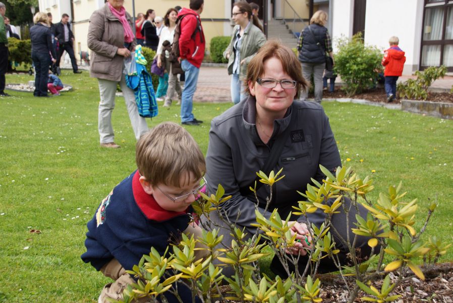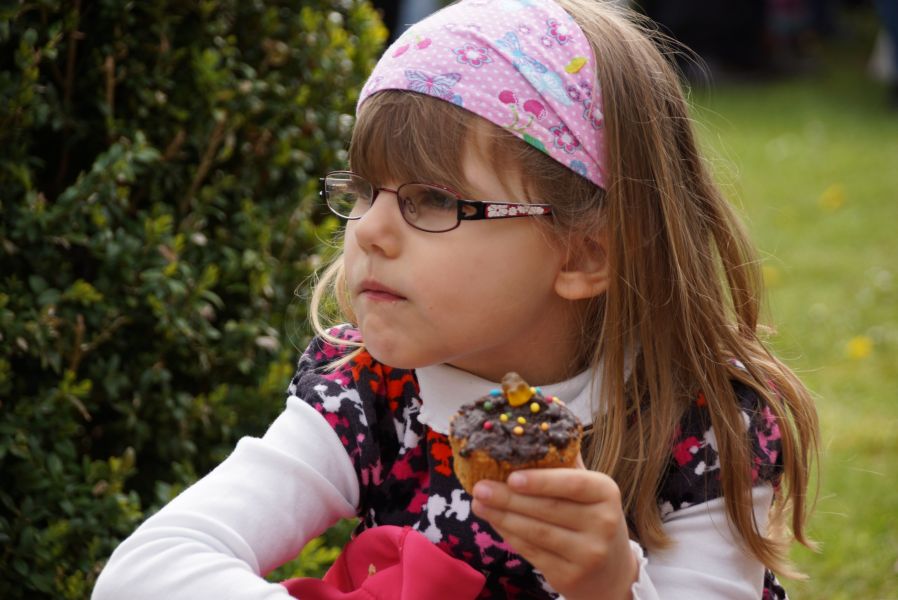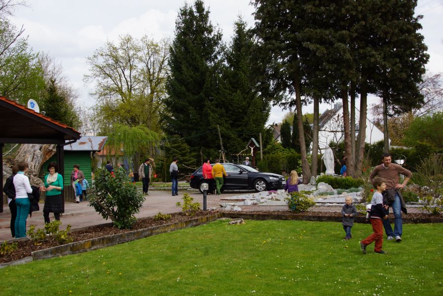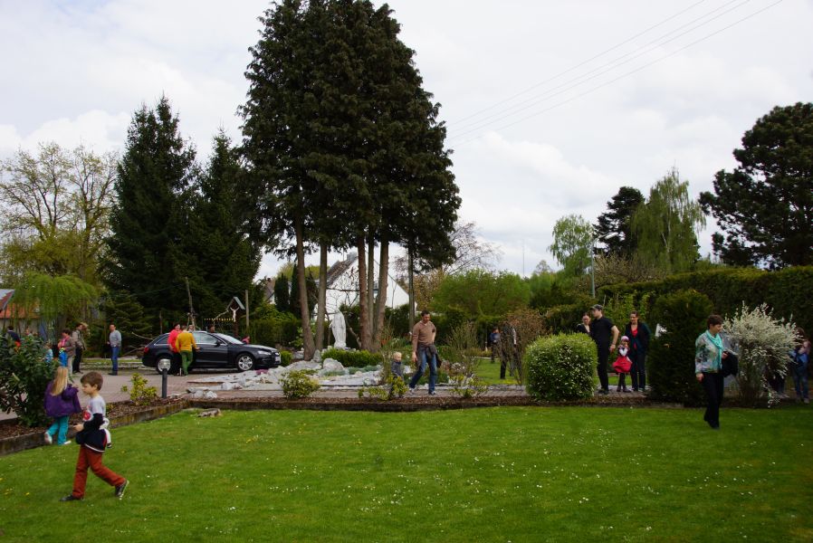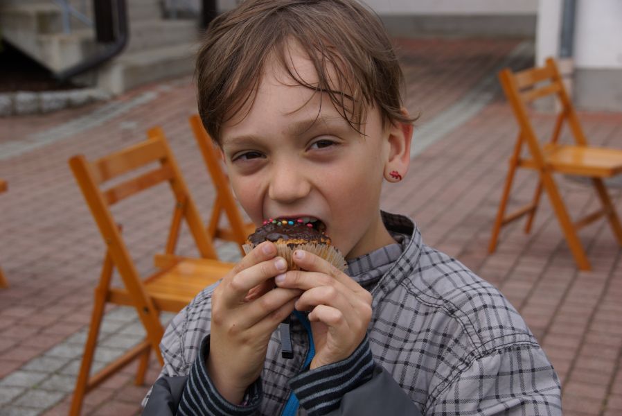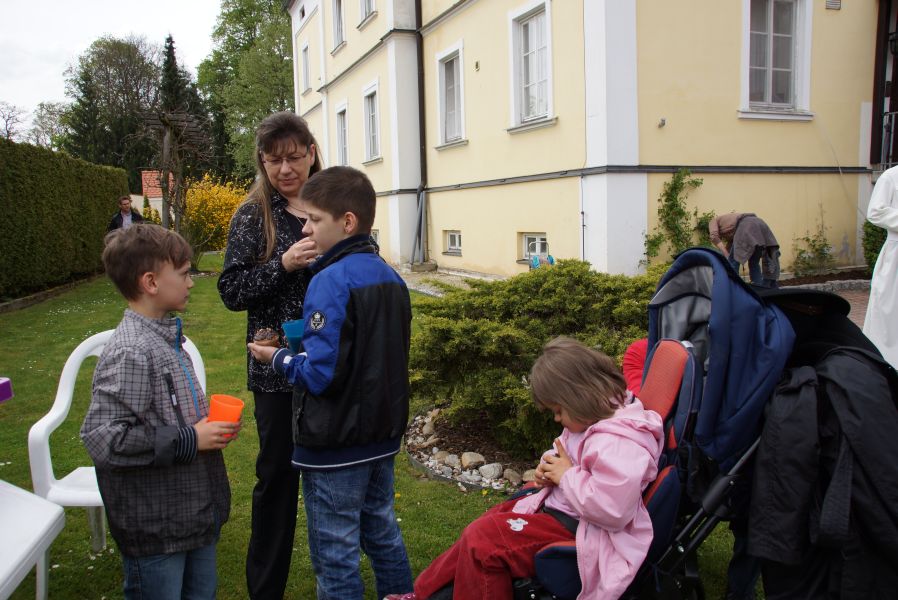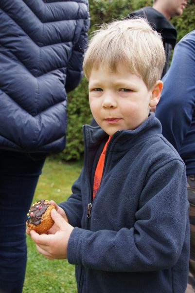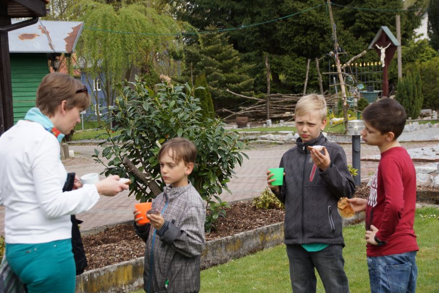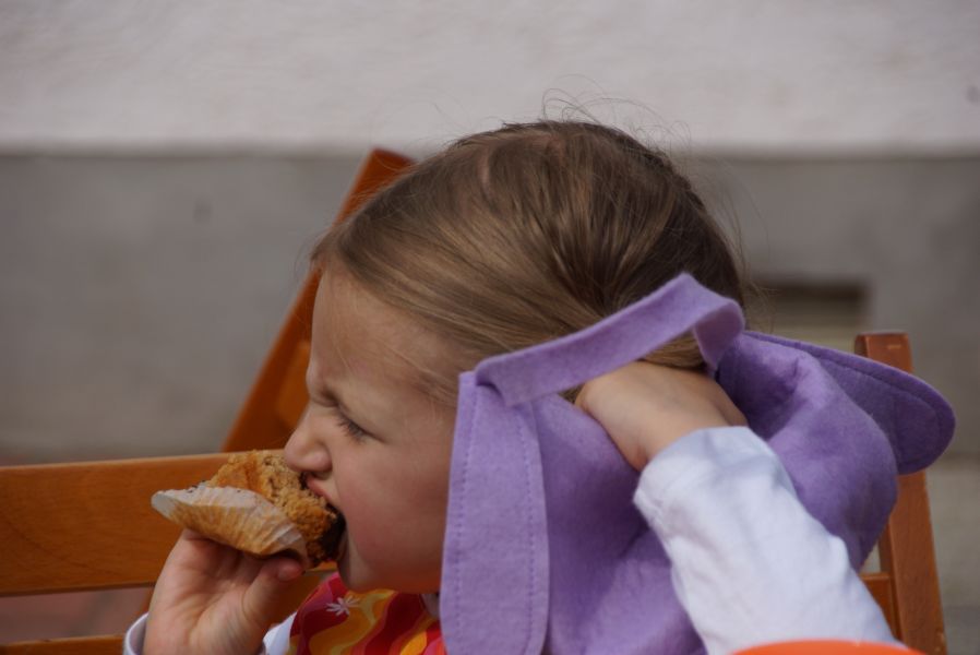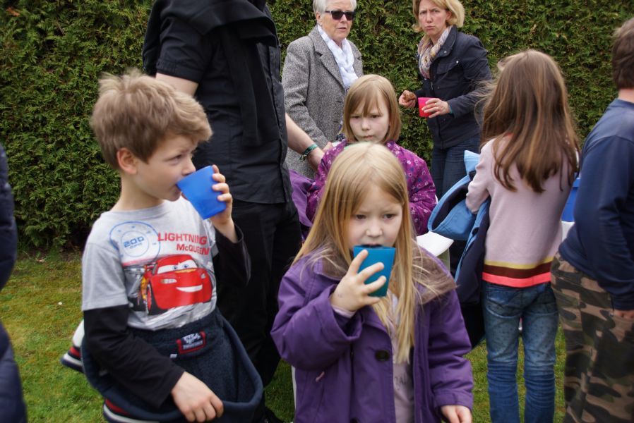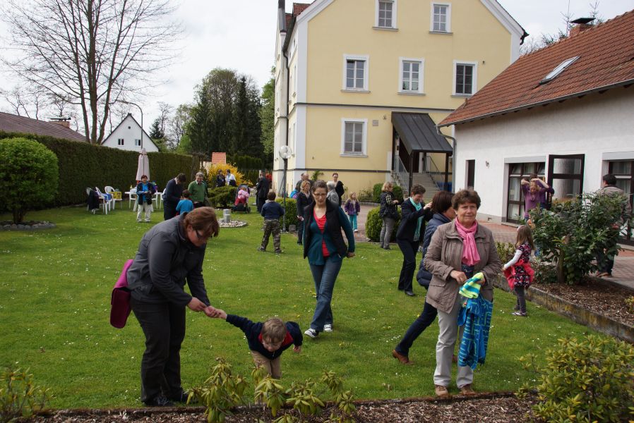 Im Klostergarten versteckte er unzählige Schokoladeneier, die innerhalb kürzester Zeit aufgesammelt wurden. Einige davon verschwanden sofort in den Mündern, genauso wie der saftige Kirschkuchen und die leckeren Muffins. Dazu gab es Kaffee, Limo und sogar kühles Bier.