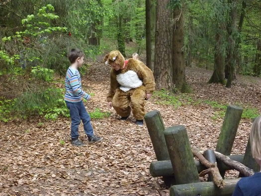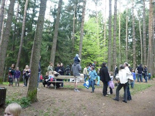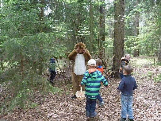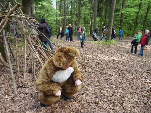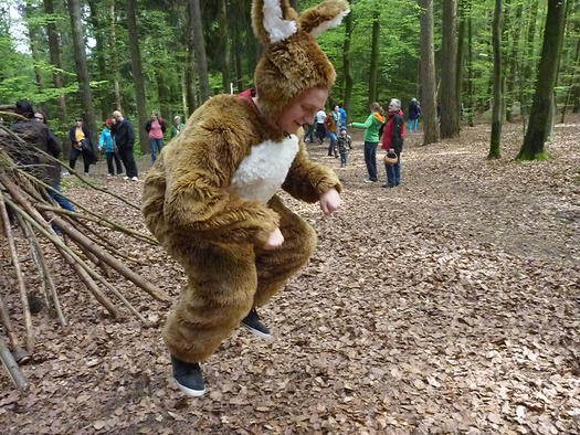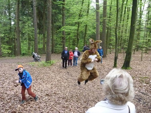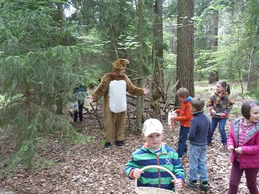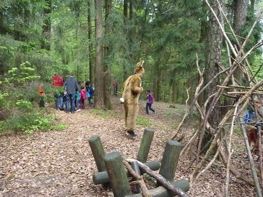 An fünf ausgeschilderten Stationen hatte der Osterhase Leckereien versteckt, die dann „schubweise“ von den Suchtrupps geplündert wurden. Der erste Ansturm ist wie jedes Jahr fast ein Wettrennen nach den meisten Eiern und Schokohasen, nach gut einer Stunde gibt sich das meistens und die Kinder entdecken den Wald. Etwas weniger Ehrgeiz und etwas mehr Muße bringen dann auf lange Sicht doch die erhofften Ergebnisse im Korb. Da die vielen Helfer des Osterhasen genug Geduld mitbringen, der Hase selber kommt durch die vielen Kinder kaum zu seiner Arbeit, finden sich auch am späten Nachmittag noch Geschenke im Wald.