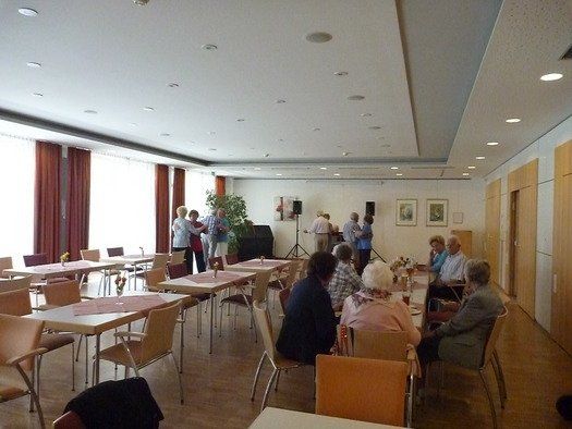Neben dem Tanzen ist natürlich die hervorragende Bewirtung mit Kafee und Kuchen aus dem Hofberg Café ein Hauptanziehungspunkt nicht nur für unsere älteren Mitbürger. Kommunikation ist angesagt, miteinander reden und sich austauschen, alte und neue Zeiten besprechen, das Osterfest noch einmal in Erinnerung bringen. Viele, die sich hier beim Tanzen treffen, sind aktiv am Freizeitangebot des Seniorenbüros beteiligt, denn was hilft das schönste Programm, wenn keiner hingeht.