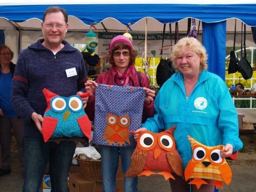 Neues gab es auch bei der vom Tierschutzverein ins Leben gerufenen Eulen-Aktion. Hier unterstützt Lydia Eden den Verein tatkräftig mit ihren wunderhübschen selbstgenähten Eulenkissen, die auch für Allergiker geeignet sind, wie sie betont. Sie hatte am Samstag wieder Nachschub gebracht und auch ihre neueste Idee - eine praktische Stofftasche für den nächsten Einkauf.
