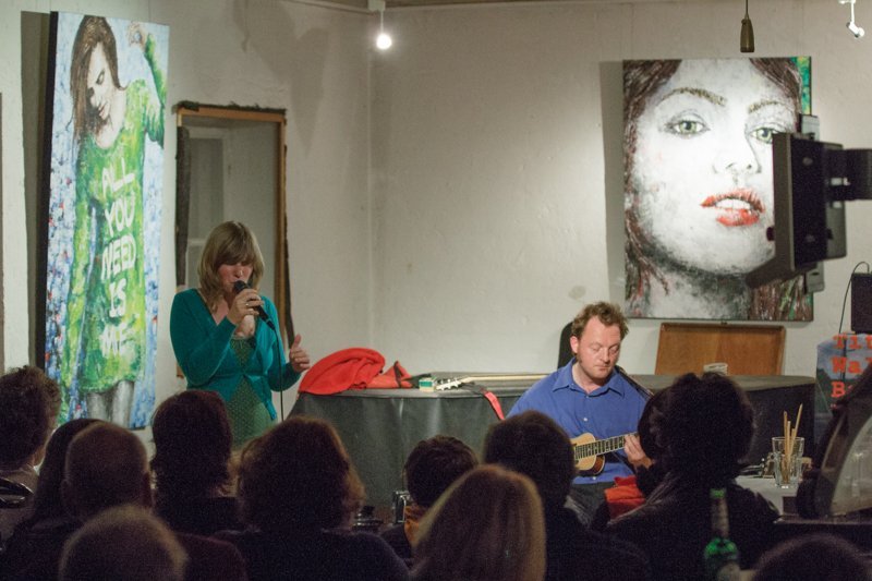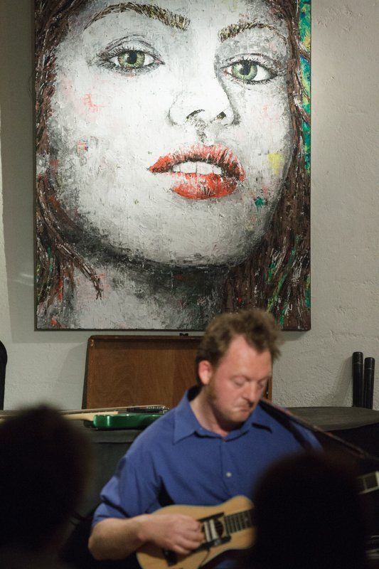 Inmitten der Bildwerke von Künstler Marco Bernd (Hallertau.info berichtete über die Vernissage) jongliert Sängerin Judith Jung mit ihrer Stimme. Neben ihr: der kreative Kopf Titus Waldenfels, an der Gitarre oder mit der Violine in der Hand. Gemeinsam mit Schlagzeuger und Akkordeonspieler Michael Reiserer, sowie Florian Burgmayr an der Tuba bilden die beiden Musikgrößen die „Titus Waldenfels Band“.