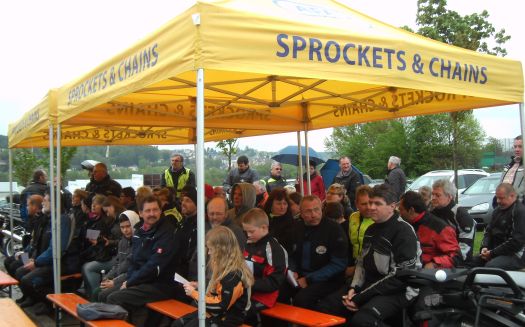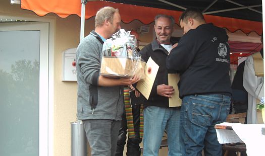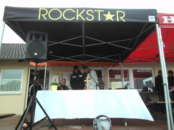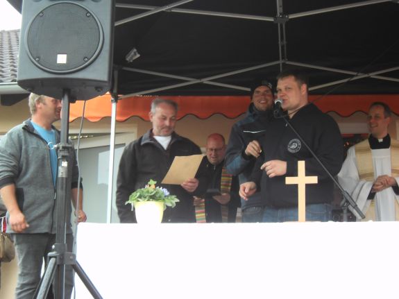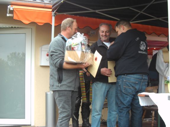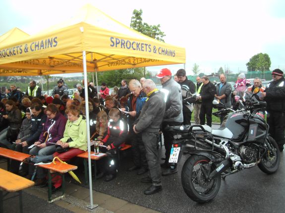 Nachdem man gemeinsam den traditionellen Motoradfahrerpsalm sprach, wurde der alte Vorstand des Motoradclubs mit einer Urkunde und einem kleinen Präsent geehrt. Eine weitere Überraschung wartete auf den ältesten anwesenden Motorradfahrer, dem man mit seinen 83 Jahren ein T-Shirt überreichte.