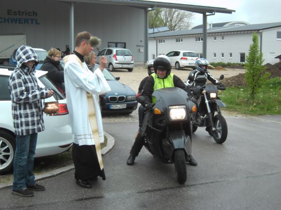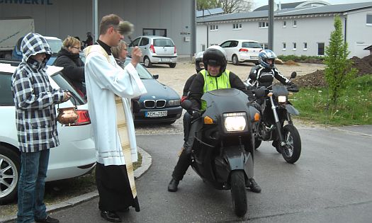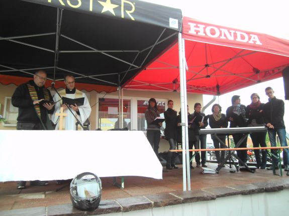 Getreu dem Motto „Nur die Harten kommen in den Garten“ gesellten sich am gestrigen verregneten Sonntag die hartgesottenen Bikerfreunde des 1. Motorradclub zum Eröffnungsgottesdienst mit Bikerweihe pünktlich zum Beginn der neuen Biker Saison 2014. Kaplan Dirk Roland und Pfarrer Frank Möwes führten durch den Gottesdienst.