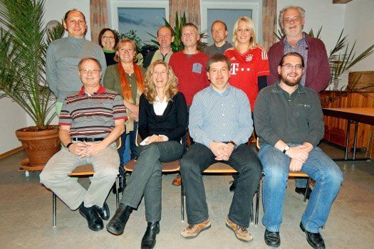 Auf dem Foto sind sitzend von links nach rechts zu sehen: Schriftführer Rolf Delventhal, stv. Vorsitzende Annette Setzensack, Ortsvorsitzender Bernd Wimmer, stv. Ortsvorsitzender Fabian Sedlmeier, nicht auf dem Foto: Beisitzer Gerhard Lang, der in Abwesenheit zum Beisitzer gewählt wurde. Im Hintergrund die 8 Beisitzer