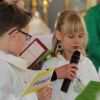 Seit Schuljahresanfang haben sich die 36 Mädchen und Jungen auf diesen Tag vorbereitet. „Ihr habt gemeinsam Brot gebacken und euer Herz auf Jesus vorbereitet“, so der Gemeindepfarrer, der sich in diesem Zuge auch bei allen bedankte, die diesen Gottesdienst halfen, mit vorzubereiten. „Ihr hab euch als Motto Brot und Wein gewählt“, so Braun. Brot hat dabei nicht nur die Bedeutung, satt zu machen, sondern auch den Hunger nach Gott zu stillen, dies stellte der Seelsorger eindrucksvoll anhand einer kleinen Geschichte dar. „Ein kleiner Laib Brot kann viele Menschen satt machen.“