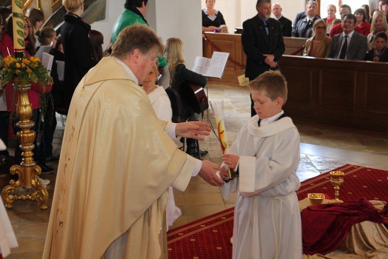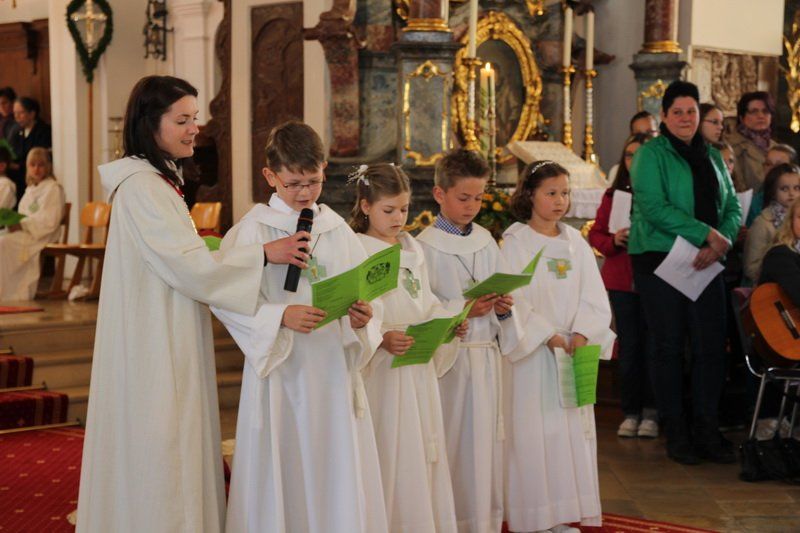 „Es ist ein Festtag für die ganze Pfarrgemeinde“, begrüßte Pfarrer Johann Braun nicht nur die 36 Kommunionkinder, sondern auch die zahlreichen Eltern und Verwandten zu dieser Feierstunde. „Heute erneuern wir das Taufversprechen und begrüßen euch in unserer Mitte “, so Braun weiter.