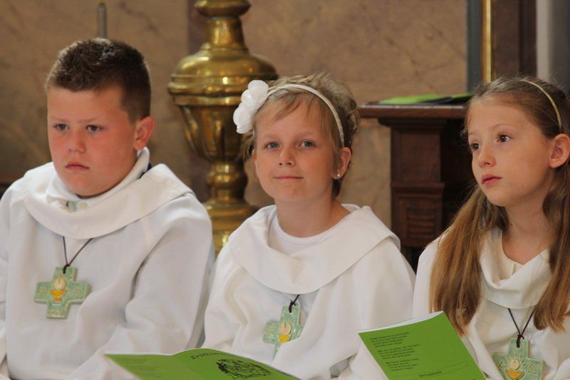 Mit diesen Worten begrüßte Pfarrer Braun die jungen Gläubigen an der Tafel des Herrn. „Ihr habt heute das Taufversprechen, das eure Eltern gegeben haben, erneuert und habt Jesus in eure Herzen gelassen."