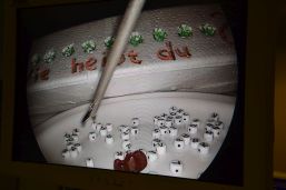 Auch für Jugendliche war interessant, wie schwierig es ist, eine minimalinvasive Operation durchzuführen. Sie mussten mit einem Greifer kleine Buchstaben erfassen und ihren Namen zusammensetzen und das Ganze über einen Bildschirm steuern.