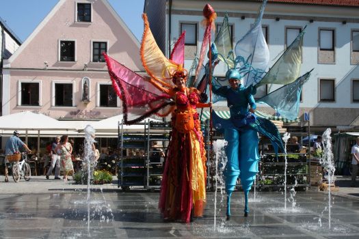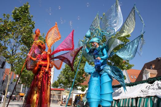 Manch einem ist das Artistenehepaar mit seinen extravaganten und auffallenden Kostümen noch in bester Erinnerung. Auch dieses Jahr werden Evelyne und Bernhard Weigl die Besucher des Wochenmarktes wieder mit Farbe, Frohsinn und toller Unterhaltung verzaubern.