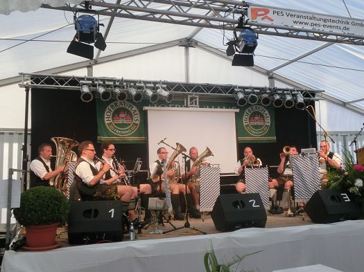 Im eigens aufgestellten Festzelt begann der erste Abend mit den "Holledauer Bifescheißern" und einem interessanten Vortrag von Adolf Widmann, dem bekannten Heimatforscher, zur Geschichte von Pfettrach. Während der Kelten- und Römerzeit gab es in der Hallertau noch keine Nachweise für menschliche Siedlungen. Die Menschen waren noch nicht sesshaft, erste Siedlungen entstanden in Flußtälern wie dem Isar - und Ampertal. Von dort aus begann dann auch die Besiedlung von Pfettrach, das ja am gleichnamigen Fluß liegt, und dessen Name übersetzt heißt "Weg am Wasser". Im 11. Jhd. stand wohl ein Wasserschloss im Ort, das aber einige Hundert Jahre später wieder zerfiel. 1465 wird Pfettrach Hofmark, 1611 wird es an Au verkauft. 1848 wird aus der Hofmark Pfettrach die Gemeinde Pfettrach mit den Ortsteilen Brandloh und Aign. 1971 wurde die Gemeinde aufgelöst und der Gemeinde Attenkirchen angegliedert.