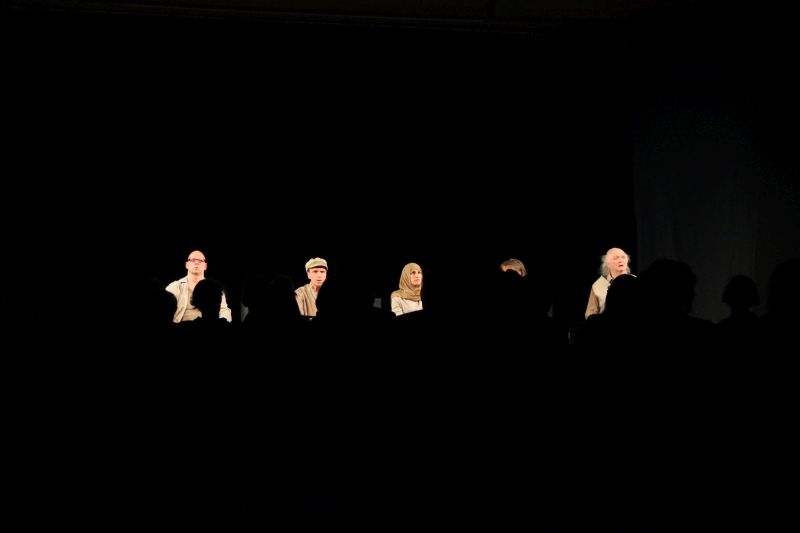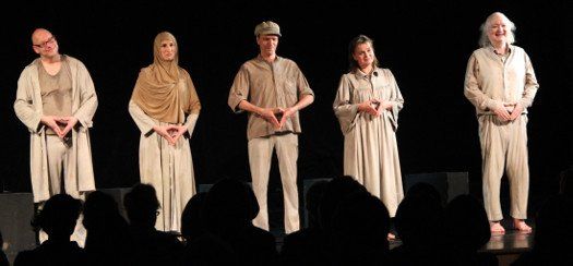 Bühnenbild und Dekoration sind quasi nicht existent. Das Stück lebt von den Dialogen. Jeder der 5 Darsteller verkörpert in den einzelnen Szenen eine Religion, eine Gesellschaft oder eine Machtposition. In den sprachlichen Auseinandersetzungen werden dabei die jeweils gegensätzlichen Positionen besetzt und dem Publikum näher gebracht. Auf diese Art und Weise werden die Sichtweisen der Religionen und Weltanschauungen aus unterschiedlichen Perspektiven dargestellt.