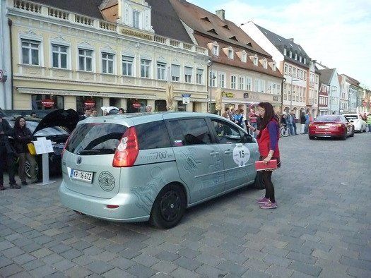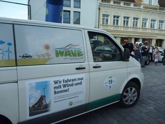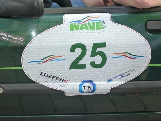 Hintergrund war die Tagesprüfung, bei der gemessen werden sollte, wer mit seinem Vorrat an elektrischer Energie am Weitesten kommt. Genau 507 Elektroautos haben zum Start der WAVE am Samstag, 31. Mai 2014 in Stuttgart gemeinsam einen neuen Weltrekord für die größte Elektrofahrzeugparade der Welt aufgestellt! (siehe Bild c wave).