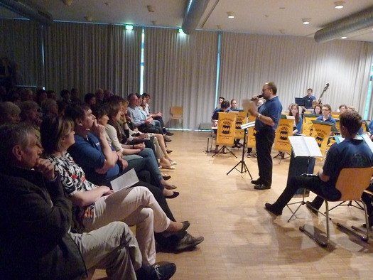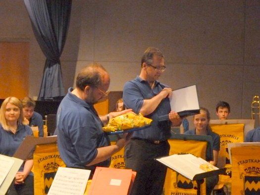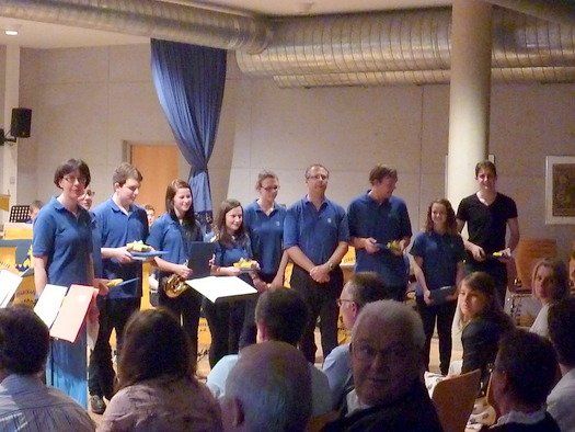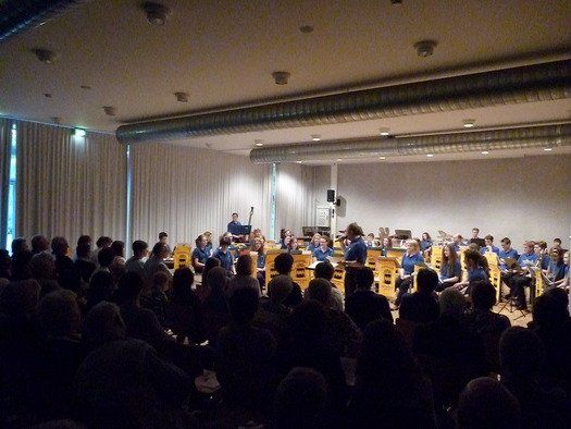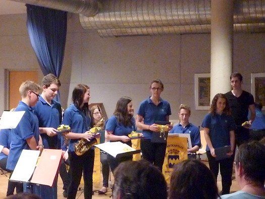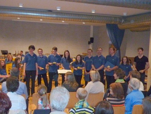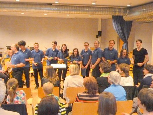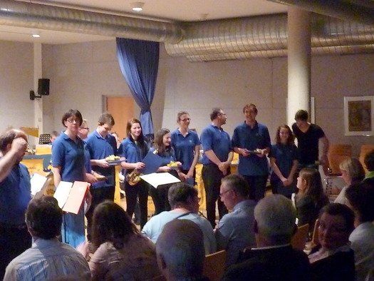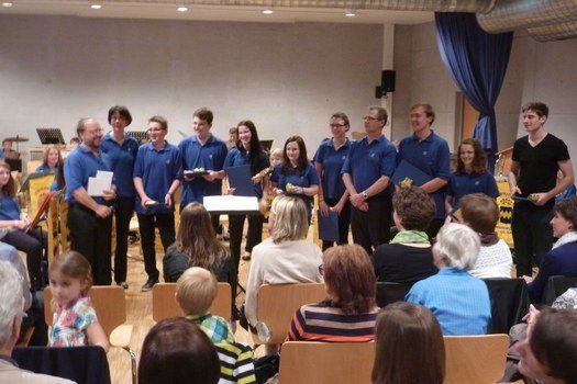 Von 18:30 bis weit nach 21:00 Uhr arbeiteten die vielen Musiker ihr anspruchsvolles Programm vor vollen Zuschauerrängen ab. Das Projektorchester unter Leitung von Manfred Leopold hatte an dem Weiterbildungswochenende in Nördlingen teilgenommen, das mit dem Preisgeld des Kulturförderpreises finanziert wurde. Es hat sich bezahlt gemacht, Star Wars Klänge von John Williams wurden fast authentisch eingespielt, wer im Orchester jetzt Luke Skywalker, Obi-Wan Kenobi oder der dunkle Lord ist, war leider nicht zu erkennen.