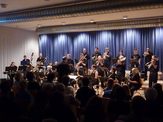 Den beschwingten Abschluss machte Auwi Geyer mit „seiner“ Big Band, Glenn Miller und Barry Manilow gaben sich von oben Beifall. Das Jugendorchester unter Christian Daschner hatte im ersten Teil schon mit Glee und Phil Collins die Vorlage zu dieser musikalischen Rundreise gegeben.
