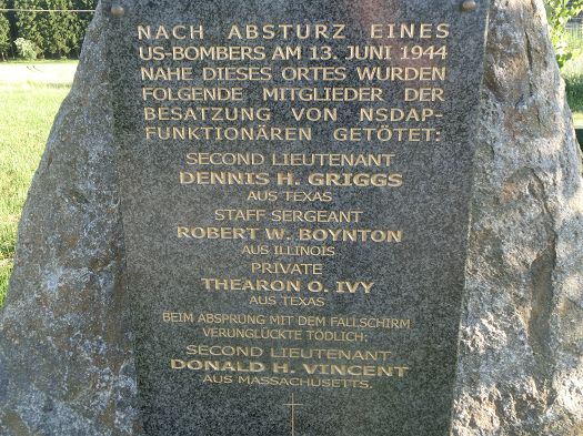 Bei dem Absturz starb ein Soldat beim Fallschirmabsprung, drei weitere wurden von Mitgliedern der NSDAP nach dem Aufprall getötet. Verwandte der Ermordeten waren bereits bei der Einweihung vor Ort, zum 70. Jahrestag kam nun auch wieder ein Mitglied der Familie eines der Getöteten an die Gedenkstelle und bedankte sich bei den Verantwortlichen für die Pflege der Erinnerung an dieses grausame Geschehen.