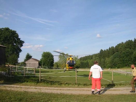 Anwohner eines Anwesens am Dorfausgang Osterwaal wurden durch ihren bellenden Hund auf einen gestürzten Radfahrer auf der Strasse vor ihrem Haus aufmerksam. Sie riefen sofort Polizei und Krankenwagen, später landete ein Rettungshubschrauber in der Pferdeweide der aufmerksamen Bewohnerin, die ihre Tiere vorher noch schnell in Sicherheit brachte und beruhigte. Der verletzte Mann, der erheblich Alkohol intus hatte, wurde ins nächstgelegen Krankenhaus geflogen.