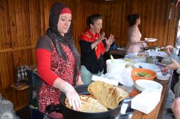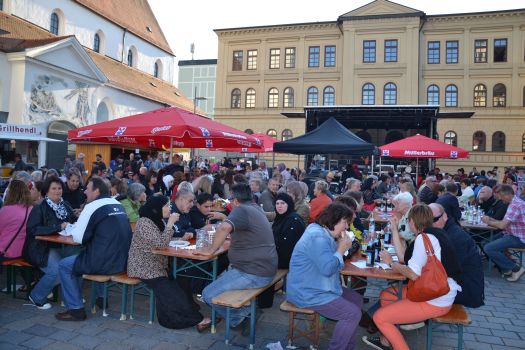 Zwischendurch nutzten immer wieder einige jugendliche Tänzer die freie Bühne und zeigten ebenfalls ihr folkloristisches Können. So bot der Abend eine laufende Abwechslung, nur während eines Gottesdienstes war eine Pause angesagt, um nicht zu stören. Den Höhepunkt der Darbietungen lieferte am Abend die Gruppe Unterbiberger Hofmusik (die Familie Himpsl). Sie musizieren seit Jahren immer wieder gemeinsam mit internationalen Gästen, wobei sie erfolgreich Arrangements entwickelten, die die traditionellen Grenzen überschreiten und doch zu einer Einheit werden. So entstand vor kurzem eine neue CD mit dem Titel Bavaturka, bei der bayrische und türkische Musik gekonnt verbunden werden. Inspiriert wurde diese Arbeit durch eine Reise in die Türkei, in der die Musiker tiefe Einblicke in die türkische Musik erlangen konnten. Und nach Meinung Franz Josef Himpsls sind die ungeraden Taktarten der türkischen Musik die Vorlage für die Musik des Balkans und haben darüber hinaus auch die bayrische Musik beeinflusst. Die Unterbiberger Hofmusik trat zusammen mit Schülern Pfaffenhofener Schulen auf, mit denen sie gemeinsam einige Stücke geprobt hatten. Zu essen gab es viele türkische Spezialitäten, die an den Ständen angeboten wurden, an denen sich immer wieder lange Schlangen bildeten.