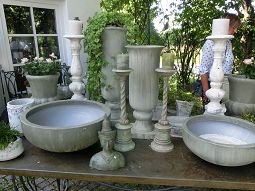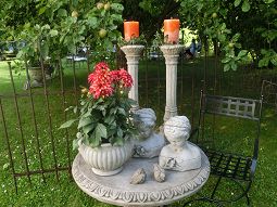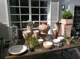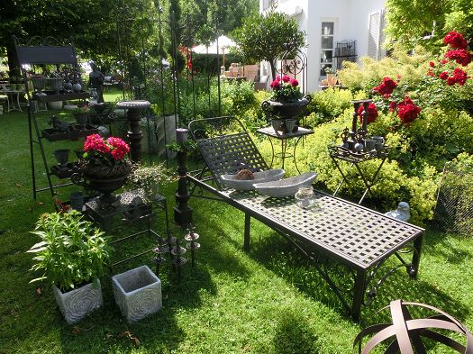 Wie immer sehr geschmackvoll dekoriert präsentiert sich die Ausstellung dem Besucher. Viele wunderschöne Pflanzgefäße aber auch Nützliches, wie Staudenstützen und Rankgitter, oftmals aus verrostetem Material, setzen neue Akzente auch im gepflegtesten Garten. Gartenmöbel laden zum Sitzen aber auch zum Kauf ein. Neu in der Ausstellung sind diesmal Gefäße aus Fiberglas.