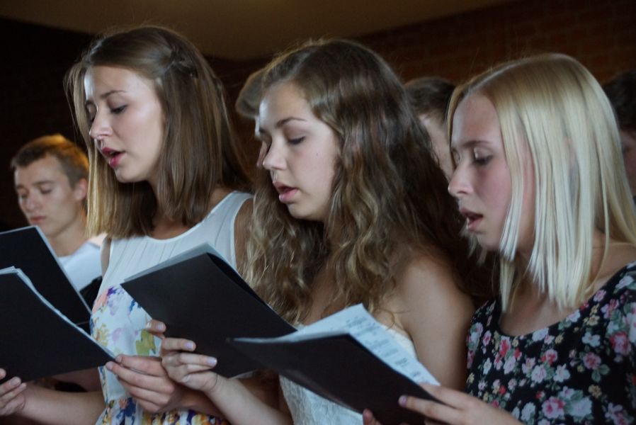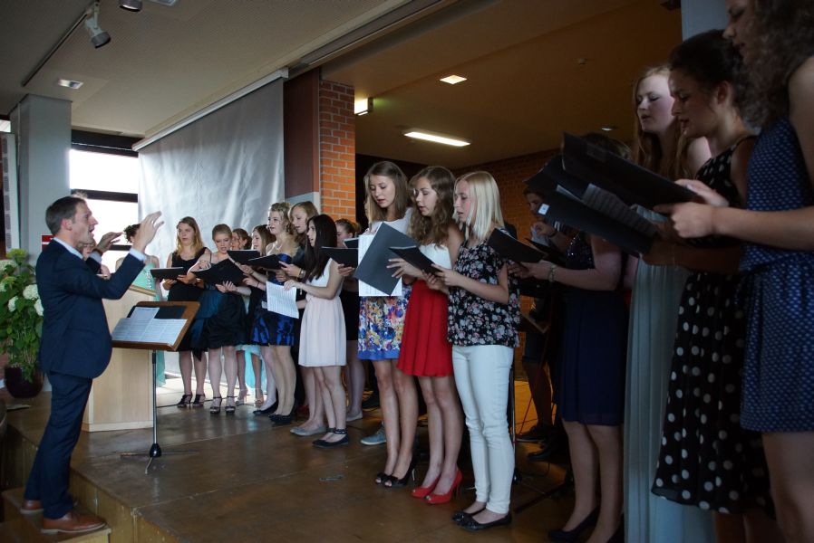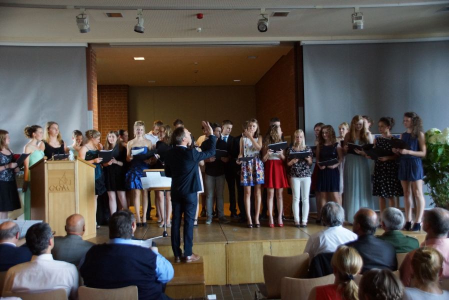 Nach den wirklich sehr, sehr, sehr kurzen Grußworten von Bürgermeister Josef Reiser, sang der Grundkurs Chor unter der Leitung von Oberstudienrat Reinhold Furtmeier „Black Orpheus“ und „Fort he longest time“.