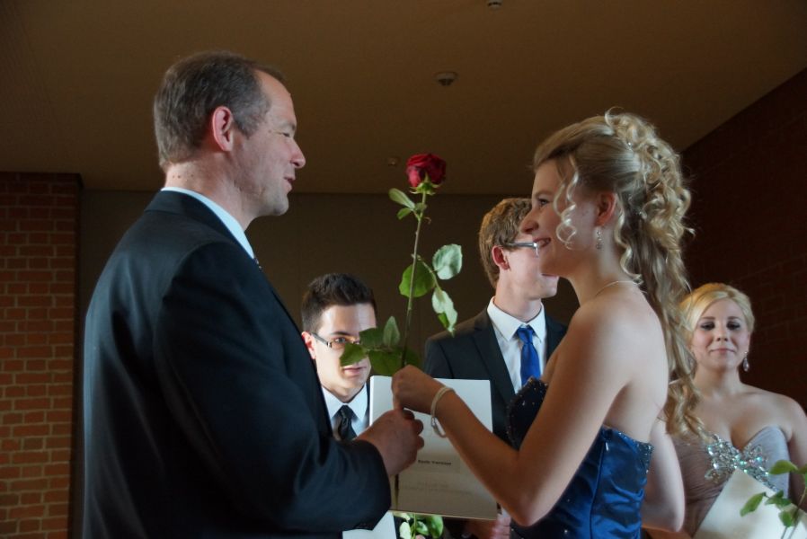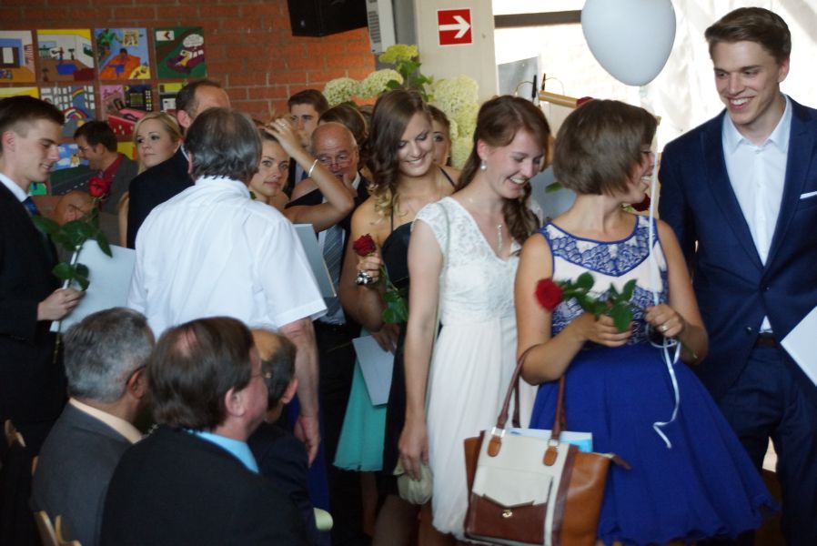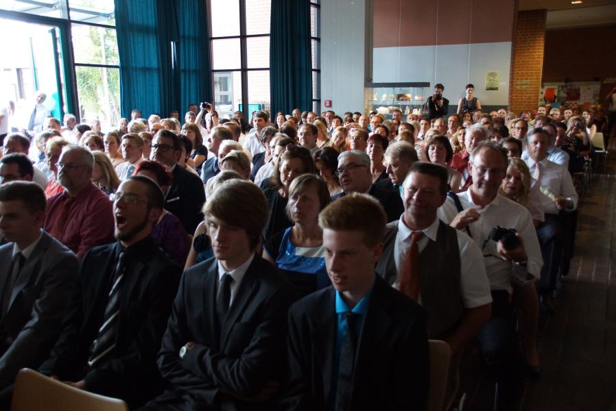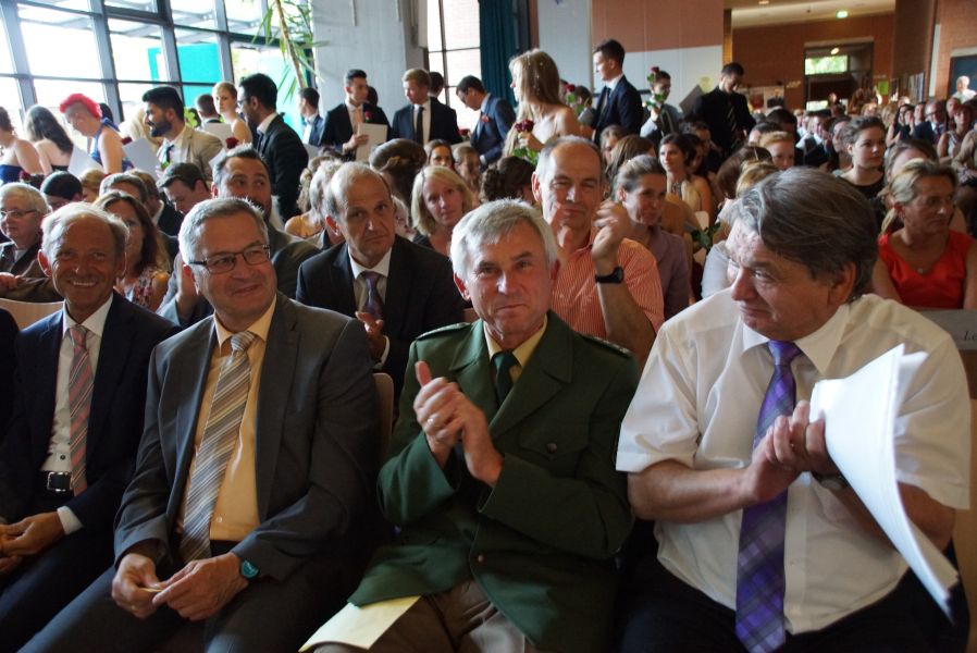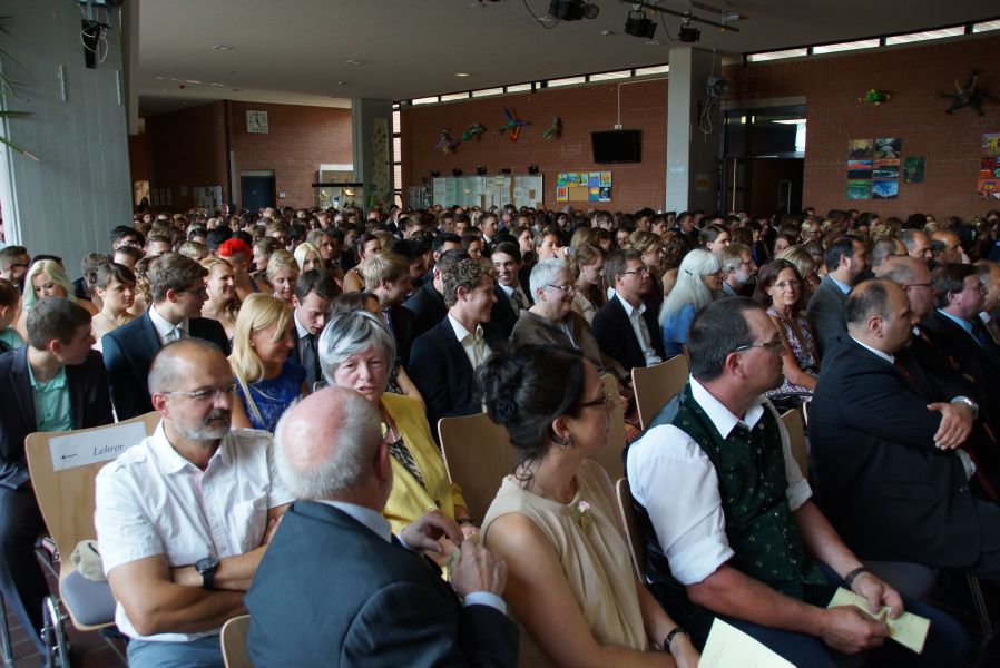 Für 132 Schülerinnen und Schüler war dieser Tag das offizielle Ende ihrer 12-jährigen Schullaufbahn. Einige hatten zwar noch ein, zwei Jahre mehr „auf dem Buckel“, aber auch für sie endete mit dieser feierlichen Verabschiedung ein wichtiger Lebensabschnitt. Der Durchschnitt der Schule ist mit der Note 2,34 sehr gut und 40 von ihnen haben sogar eine Eins vor dem Komma.