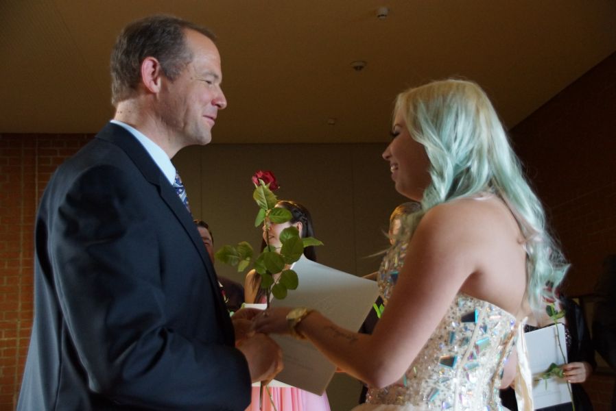 Der Elternbeiratsvorsitzende Faruk Durmaz und Oberstufenkoordinator Otto Farber verabschiedeten, ebenso wie schon ihre Vorredner, die 66 jungen Damen und ebenfalls 66 jungen Herren, mit den besten Glückwünschen.