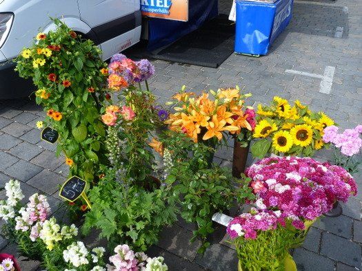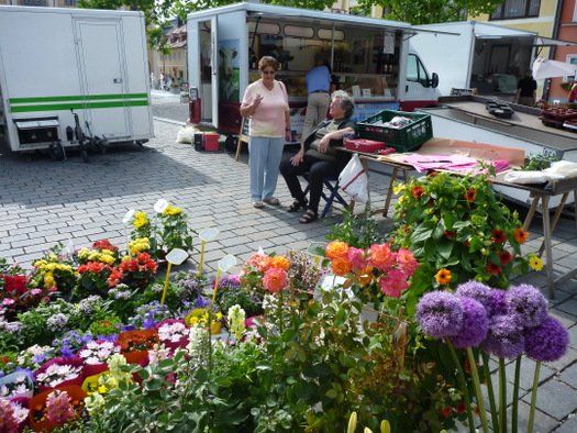 Hier spielt die Musik, in großen Lettern fand sich an vielen Stellen im Haus der Begegnung und dem unteren Hauptplatz, der Hinweis auf klangliches Erlebnis. Der Wochenmarkt war schon viel früher wach, die Beschicker hatten wieder einmal das Beste aufgeboten was die heimischen Gärten bieten konnten. Blumen und Kirschen, Erdbeeren und Gemüse, verwandelten den steingrauen Hauptplatz in ein expressionistisches Farbenmeer. Jedem Maler und Fotografen hüpft das Herz bei dieser Motivauswahl. So mancher Wochenmarktbesucher trägt mehr nach Hause als er geplant hat, Gelegenheit macht Liebe.