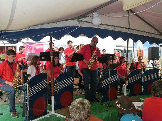 Am meisten Besucher sah man im Zelt im Innenhof von Getränke Strixner, da saß man doch wenigstens im Trockenen, konnte Helmut Schranner und seinen Musikanten lauschen, es gab genug Kulinarisches, alles organisiert vom Spielmannszug Nandlstadt. Dessen neue Big Band sowie Gruppen der Musikschule Papageno sorgten für Begeisterung.