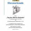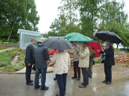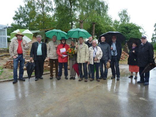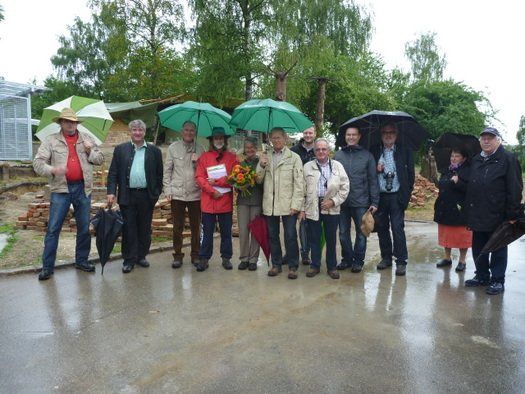 Viele neue Bäume wurden gepflanzt und der professionale Zuschnitt des großen alten Bestandes zeigt erste Wirkung. Der neue Lehmbackofen vor der Gemeinschaftsfeuerstelle muß zwar noch abtrocknen, aber man riecht förmlich schon das frische Brot. Eher versteckt schmiegt sich hi und da ein Kunstwerk ein, oder wächst zum Teil des Gartens heran. Der InterKulturGarten ist ein Bürgerprojekt, in dem die Bürger mit anpacken, anstatt nur zu fordern. Jeder lässt hier den Anderen so viel Platz, wie er selber gerne hätte. Die offizielle Delegation um den stellvertretenden Landrat Anton Westner (siehe Bild/Text) war voll des Lobes ob dieser gelungenen Initiative und hatte auch kleine Geschenke und eine Ehrenurkunde dabei.