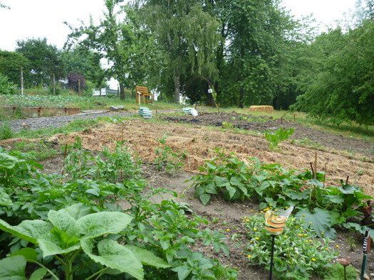 Die Lösung zu Wasserproblemen in trockenen Zeiten konnte ebenso besichtigt werden, wie die Ergebnisse, wenn gut gewässert wird. Die Kirschen hängen momentan schon in Gesichtshöhe und das Gemüse in den Parzellen macht sich Platz.