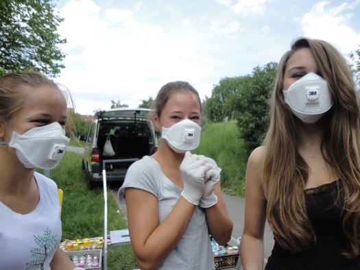 Kurz nach Mittag probierten die Teilnehmer in Einzelgruppen die Handhabung der Spraydosen und versuchten sich in verschiedenen Sprühtechniken. Erst nach dem Streichen der Wandfläche mit der Hintergrundfarbe, konnten sie sich an die Umsetzung ihrer Motive und Schriftzüge mit den Spraydosen im großen Stil wagen. Auch hier wurde mit heller Farbe vorskizziert, die Flächen mit sogenannten „Fat Caps“, dickeren Sprühaufsätzen, gefüllt und dann fieberhaft an den Details gearbeitet. Erst Sonntag Mittag und im Laufe des Nachmittags erklärten sich die ausdauernden Teilnehmer mit den Ergebnissen der zwei Tage harter Graffitiarbeit zufrieden, wobei sie fortwährend von Andreas Dill mit wertvollen Tipps zum Weitermachen und Verfeinern versorgt wurden. Und die Ergebnisse können sich durchaus sehen bzw. an der Krankenhausunterführung bewundern lassen. Andreas Dill wird in den nächsten Wochen und Monaten hin und wieder weitere Bilder an der Unterführung in Zusammenarbeit mit befreundeten Sprayern hinzufügen. Wer sich für das Graffiti-Projekt „Du hast die Dosen… wir die Mauern“ interessiert bekommt weitere Informationen zudem unter http://beinspired.stadtjugendpflege.de/ oder direkt bei der Stadtjugendpflege Pfaffenhofen.