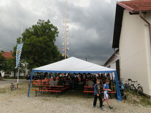 Dies alles trug nicht gerade zu einem Besucheransturm bei. Trotzdem machten sich einige Unverdrossene auf den Weg zum Dorfplatz und genossen da ein frisches Bier, Steaksemmeln, Räucherfisch, Käse, aber auch Kaffe und Kuchen. Vielleicht wäre mit einem Public Viewing mehr Andrang zu verbuchen gewesen, aber auch so machte sich der Veranstalter FC Bavaria Baumgarten alle Mühe. Auch für die Kleinen war gesorgt, eine große Hüpfburg lud zum Toben ein.