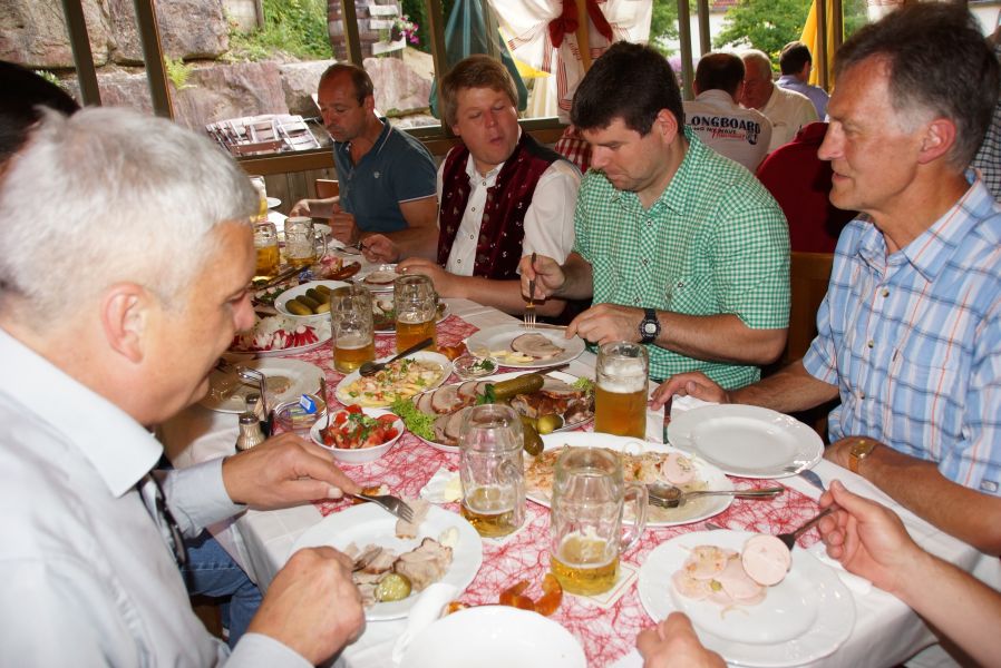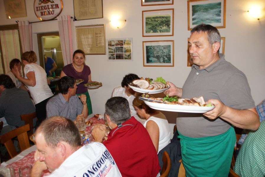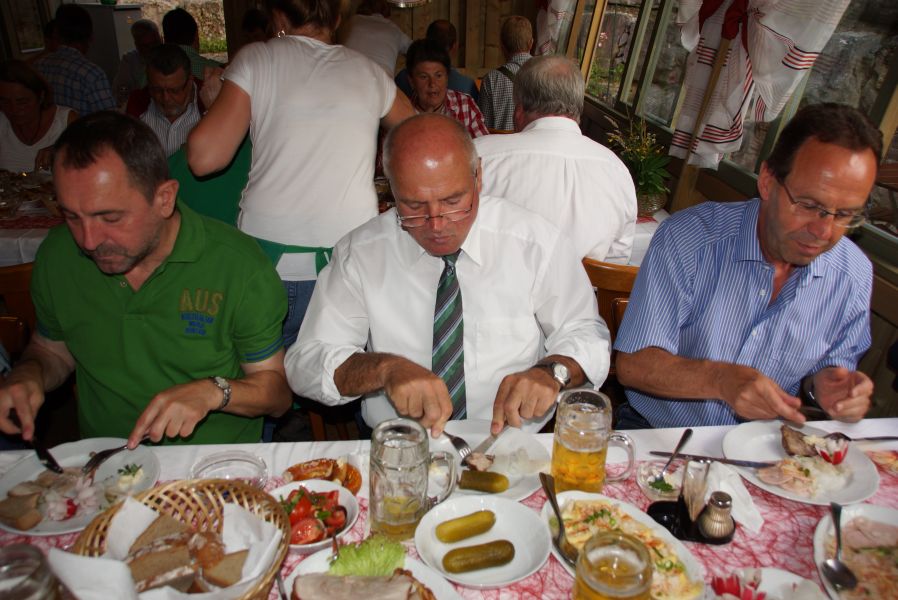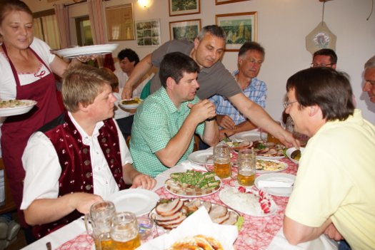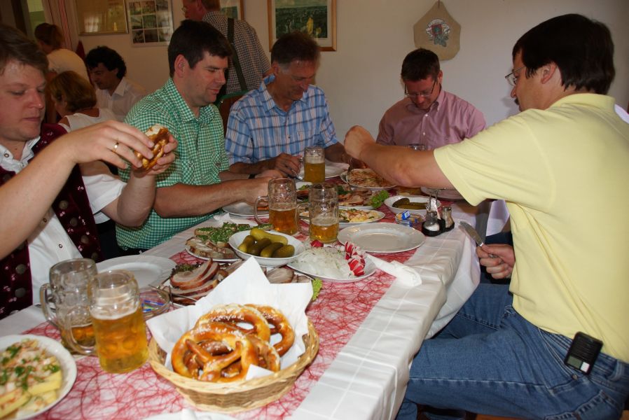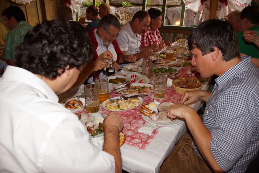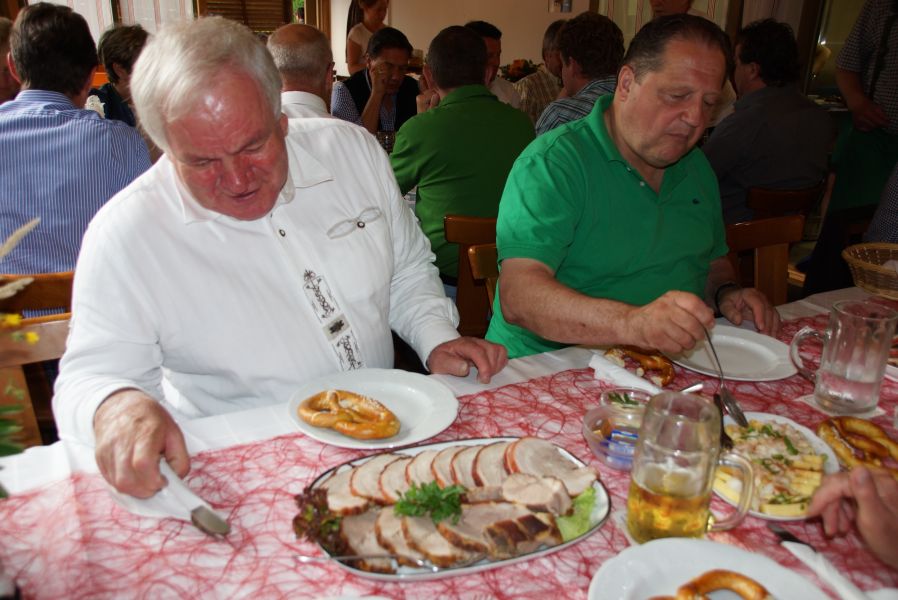 Nach den kurzen Ansprachen der drei Hauptakteure ging es zum gemütlichen Teil über. Damit übertraf sich die Familie Randeltshofer selber. Bei der Fülle an „sauguaden“ bayrischen Schmankerln schmeckte das Zieglerbier gleich nochmal so gut. Vom kalten Braten, Wurst- und Käsesalat, Obazdn, Radieserl und Radi bis hin zu rotem und weißem Pressack, Gürkchen, Tomatensalat, frischem Brot und knusprigen Brezenwurde alles aufgetischt, was die Speisekarte des Zieglerbräubiergartens zu bieten hat.