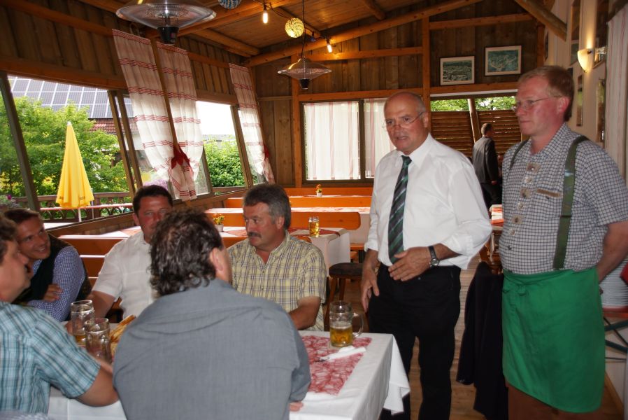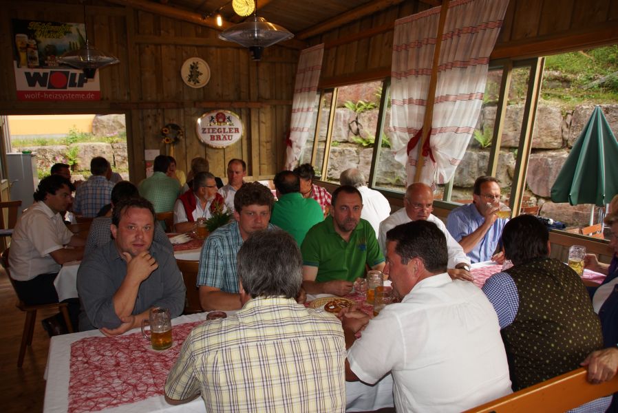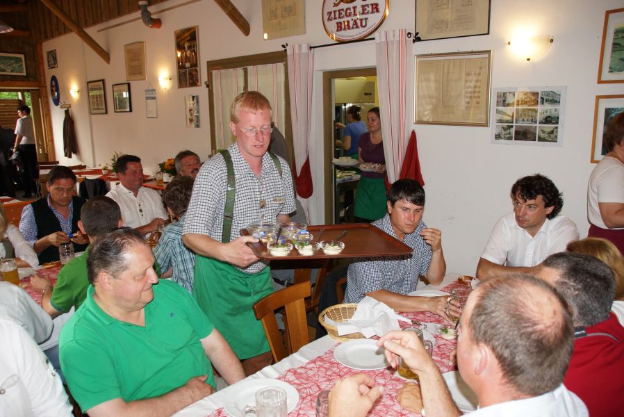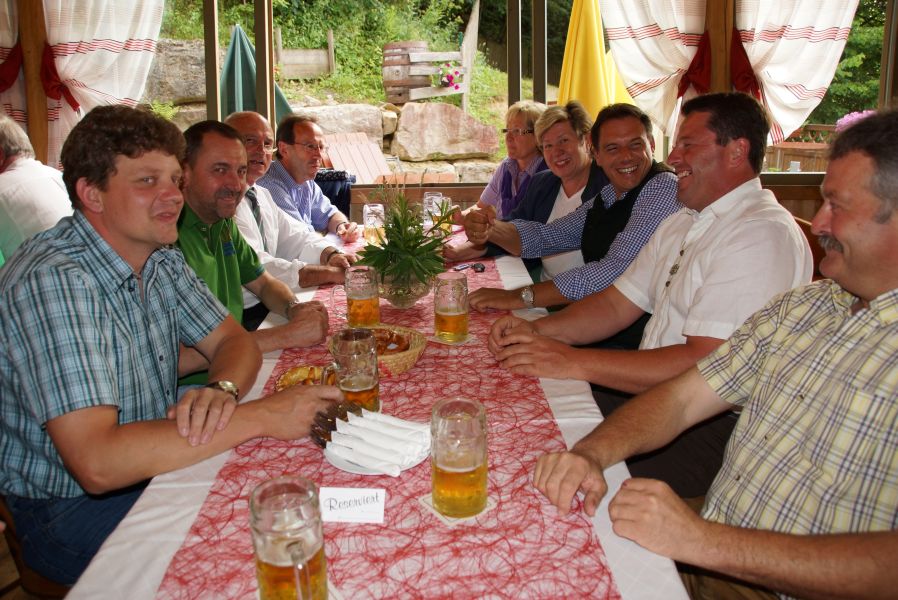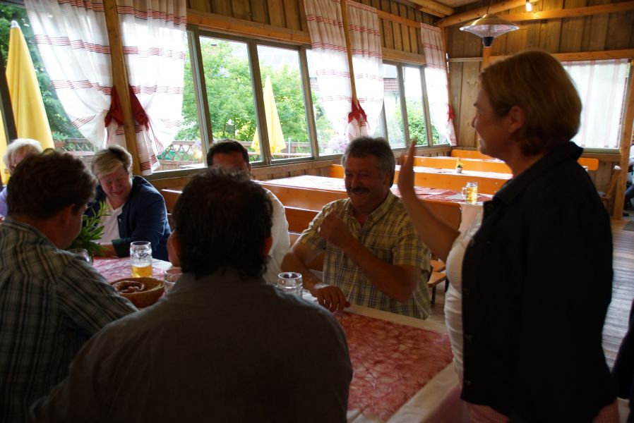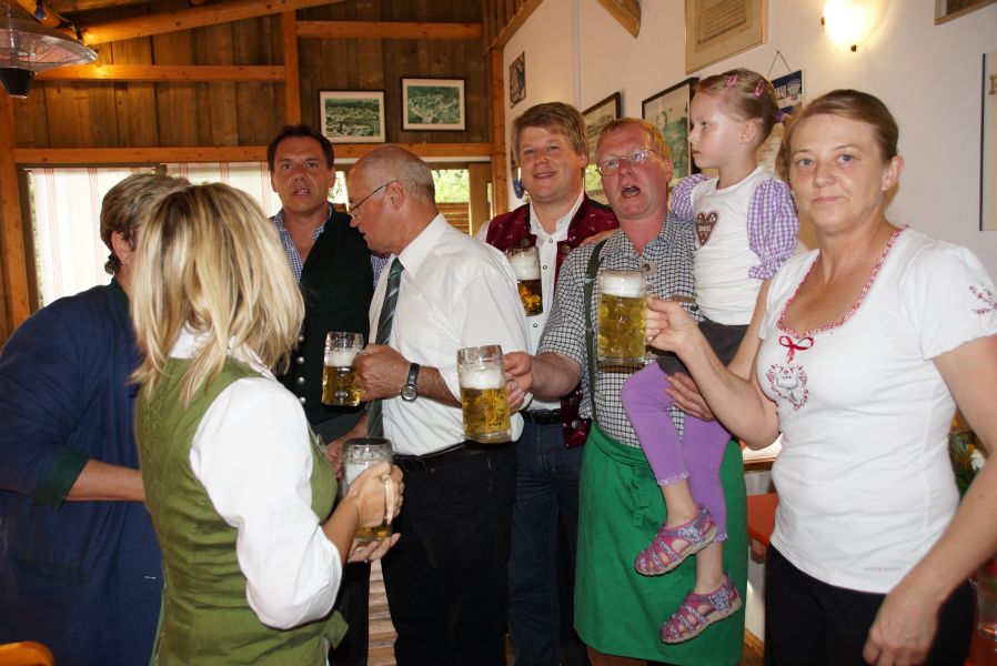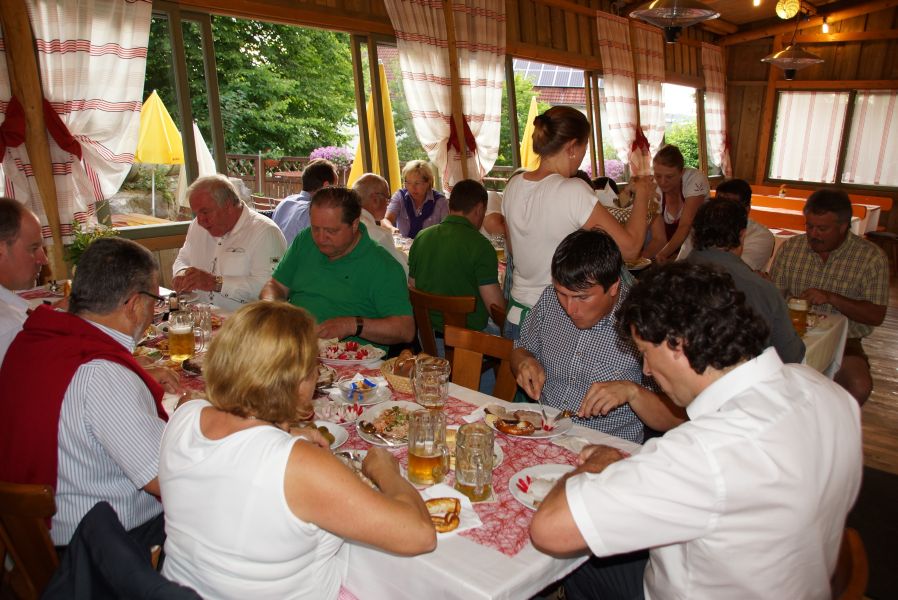 Bei sommerlichen Temperaturen machte es sich die ganze Gesellschaft im Wintergarten der Wirtsleute bequem und freute sich über die Einladung für Speis und Trank vom Festwirt und der alteingesessenen Mainburger Brauerei. Das Bier schmeckte wie immer ausgezeichnet und floss ganz ordentlich schon vor dem offiziellen Teil der Veranstaltung.