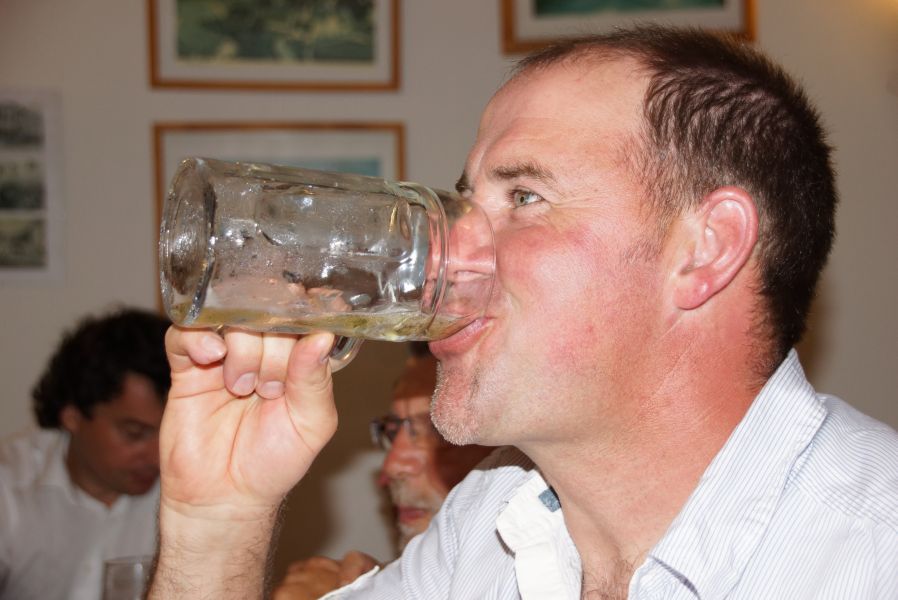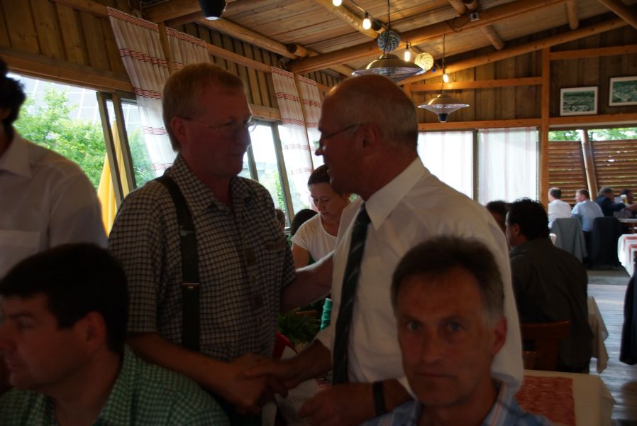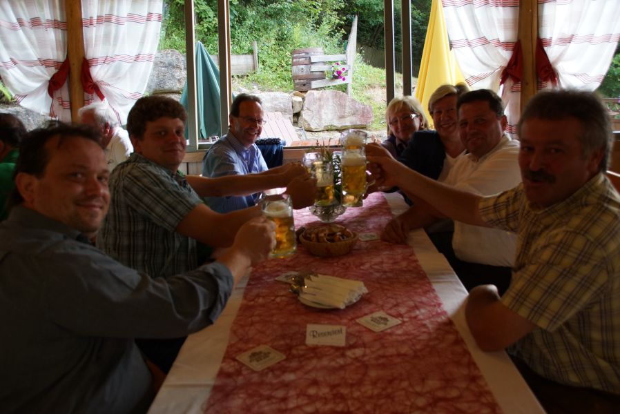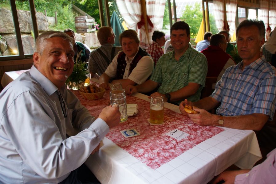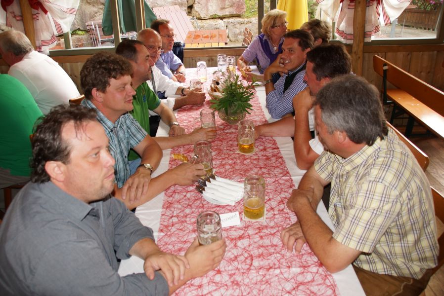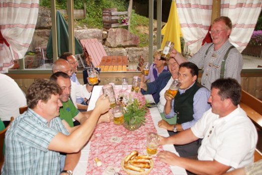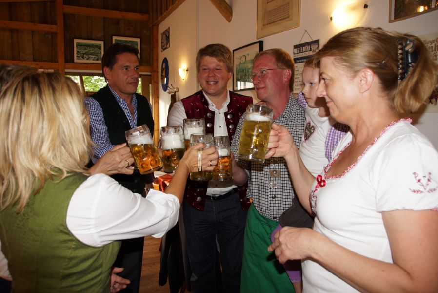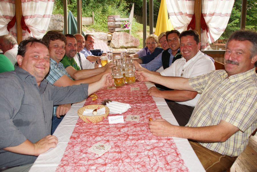 Bei sommerlichen Temperaturen machte es sich die ganze Gesellschaft im Wintergarten der Wirtsleute bequem und freute sich über die Einladung für Speis und Trank vom Festwirt und der alteingesessenen Mainburger Brauerei. Das Bier schmeckte wie immer ausgezeichnet und floss ganz ordentlich schon vor dem offiziellen Teil der Veranstaltung.