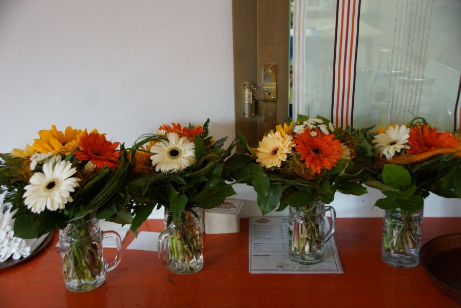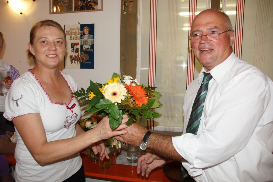 Auf der Wunschliste vom Bürgermeister, dem Festwirt und der Zieglerbrauerei steht ganz oben, dass Petrus „mitspielt“ und ein reibungsloser Verlauf des Hopfenfestes 2014. Als kleine Anerkennung für die Unterstützung der Damen in der Runde verteilte Josef Reiser vier hübsche, sommerliche Blumensträuße für die beiden Frauen des Festwirtes, Petra die Mama und Petra die Gattin, und die beiden Frauen vom Bräu Hermine und Dorota, wobei die Schwiegertöchter die Sträuße für ihre Schwiegermütter in Empfang nahmen.