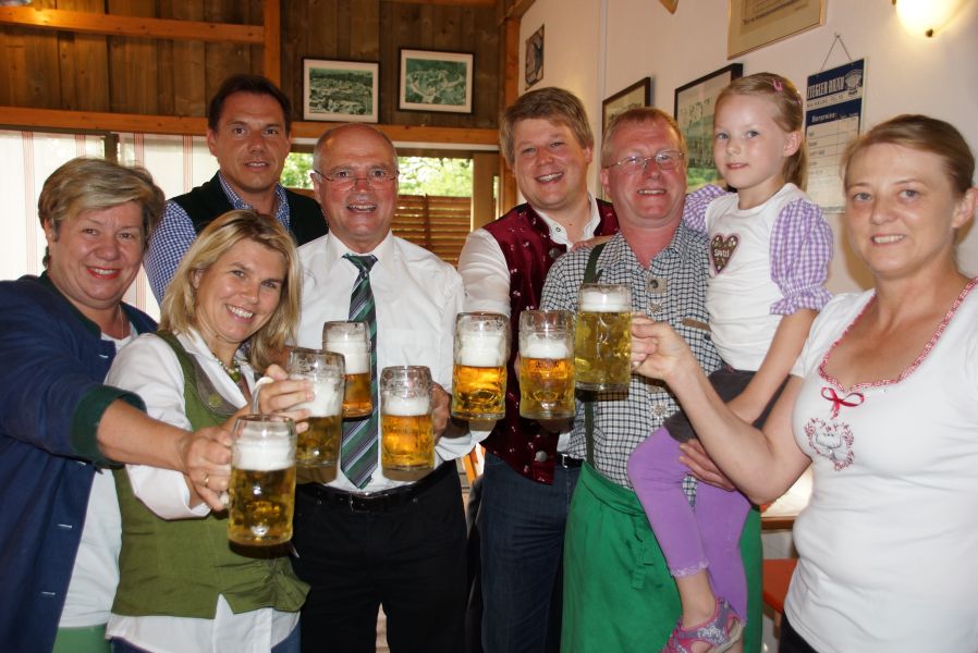 Was wäre ein Hopfenfest ohne süffiges Bier? Was für eine Frage, das ist eines der wichtigsten Kriterien das „passen" muss, wenn nicht gar DAS Wichtigste. Um sicher zu gehen, dass der Zieglerbräu Hopfen und Malz gut „gekocht“ hat, trafen sich zahlreiche Stadträte, Ortsprecher, einige Verwaltungs- und Bauhofangestellte, sowie die drei Mainburger Bürgermeister und natürlich die Festwirtsleute der „Bayernlandhalle“ Petra und Peter Schöniger im Biergarten von Dorota und Wolfgang Randeltshofer.