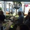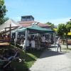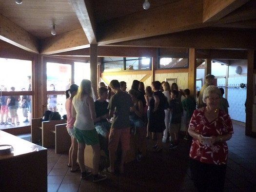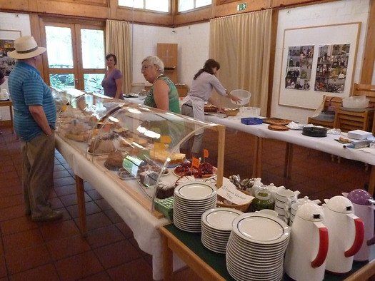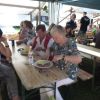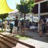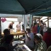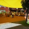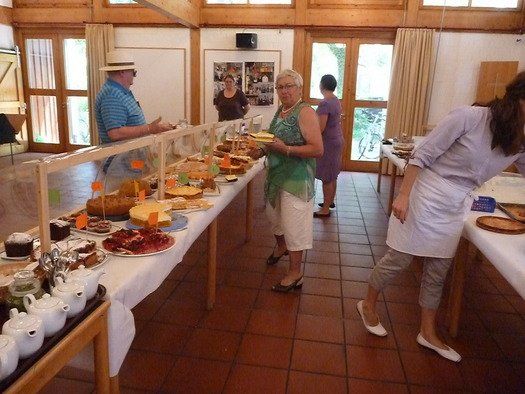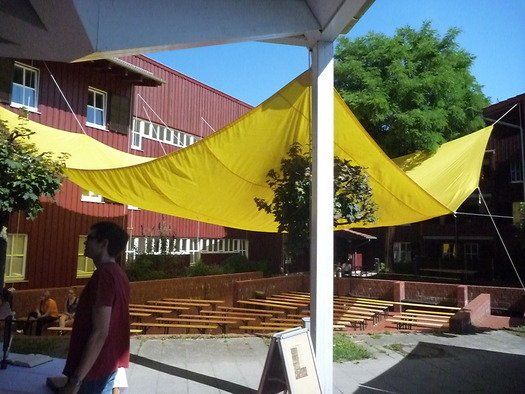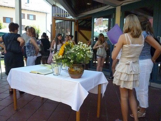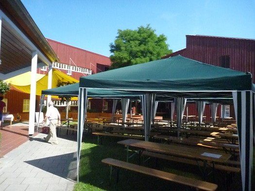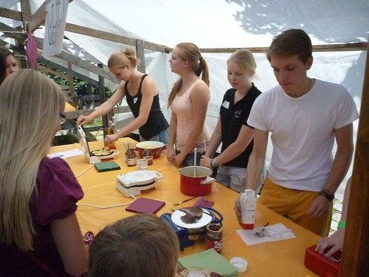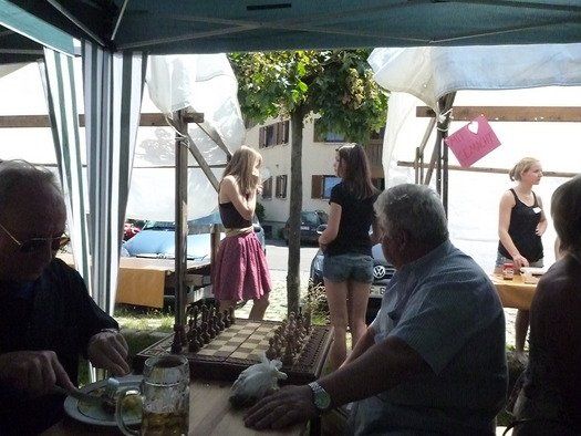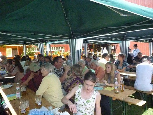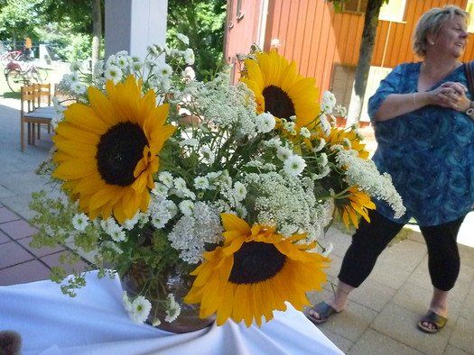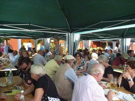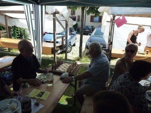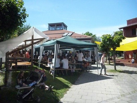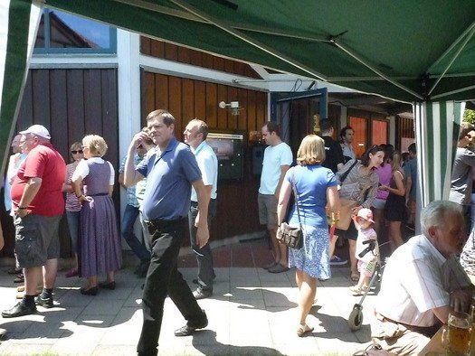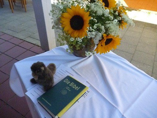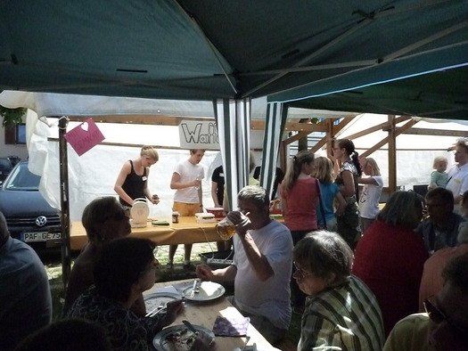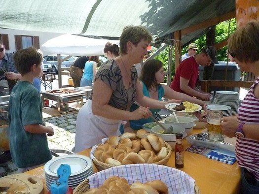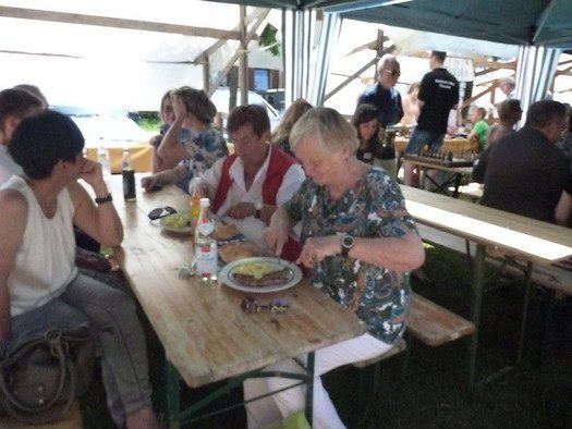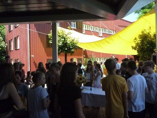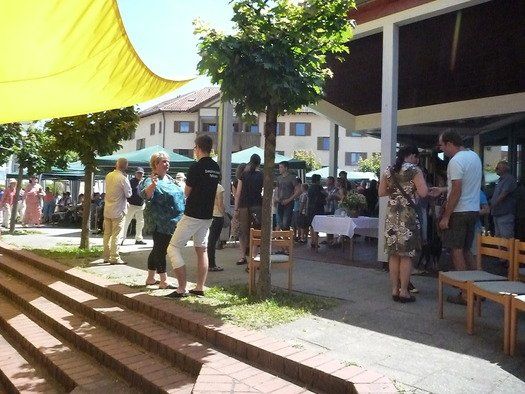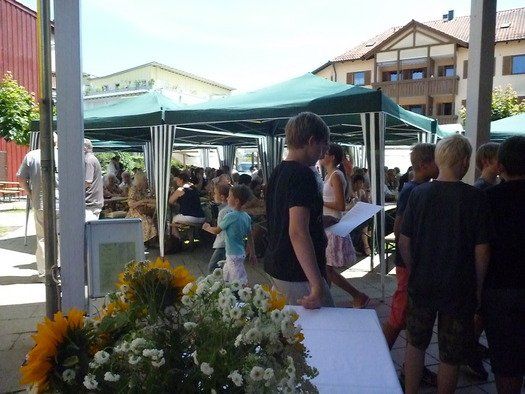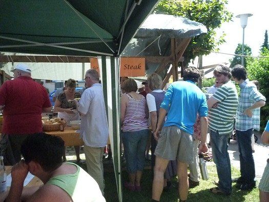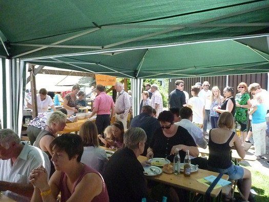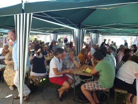 Das große gelbe Segel über dem Gemeindezentrum spendete zwar Schatten, allein der kühlende Luftzug fehlte. Bei bestem Fleisch vom Grill, natürlich BIO, wurde den Besuchern dann erst richtig heiß, die Getränke und der Schweiß flossen in Strömen, der größte Teil nichtalkoholischer Art. Pfarrerin Murner predigte aus Lukas 13-14 und die evangelische Jugend suchte bei der Schnitzeljagd nach der besten Lösung. Das Kuchenbuffet war auf jeden Fall größer als das der Katholiken, was aber nicht heißen soll, da wäre jemand süßer.
