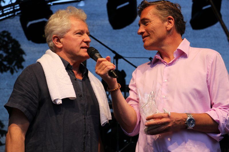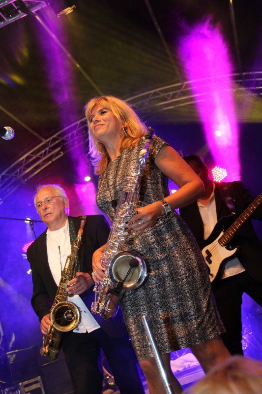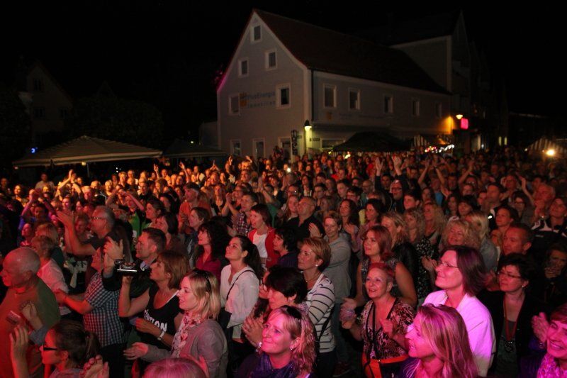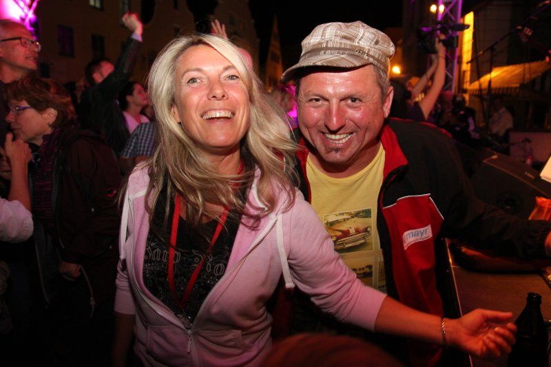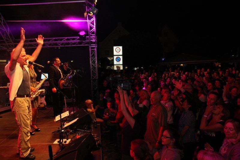 Und während nun Miroslav Nemec gemeinsam mit seiner Band den Marienplatz rockte, hatten die zahlreichen Helfer rund um Rathaus und Mariensäule alle Hände voll tun, um nicht nur die feiernden Wolnzacher, sondern auch die vielen Läufer aus ganz Bayern mit Bier und kleinen Köstlichkeiten zu versorgen. Dass man im Herzen der Hallertau Feste zu feiern weiß, wie sie fallen, das konnte man in der Vergangenheit gerade auch bei Lauf 10! schon sehen. „Wir freuen uns wirklich sehr, jedes Jahr wieder nach Wolnzach zu kommen“, so Tanja Arnold. Waren es im vergangenen Jahr schon Zigtausende, tummelten sich dieses Mal noch mehr vor der Bühne. Und für sie hatte der Tatort-Kommissar nicht nur jede Menge Hits im Gepäck sondern auch eine Überraschung. „Begrüßt mit mir am Saxophon … Tanja Arnold!“, so Miroslav Nemec, der gemeinsam mit seinen Bandkollegen den Auftritt in der Hopfenmetropole sichtlich genoss. So war auch für die Projektleiterin der Abend nach der Sendung noch lange nicht beendet. Doch auch als Miroslav Nemec nach der dritten Zugabe die Wolnzacher Bühne verließ - „Es war ein gigantisches Publikum“, so der Tatort-Kommissar – war für die Wolnzacher noch lange nicht Schluss. DJ Roland heizte mit zahlreichen Partykrachern die Stimmung weiter an.